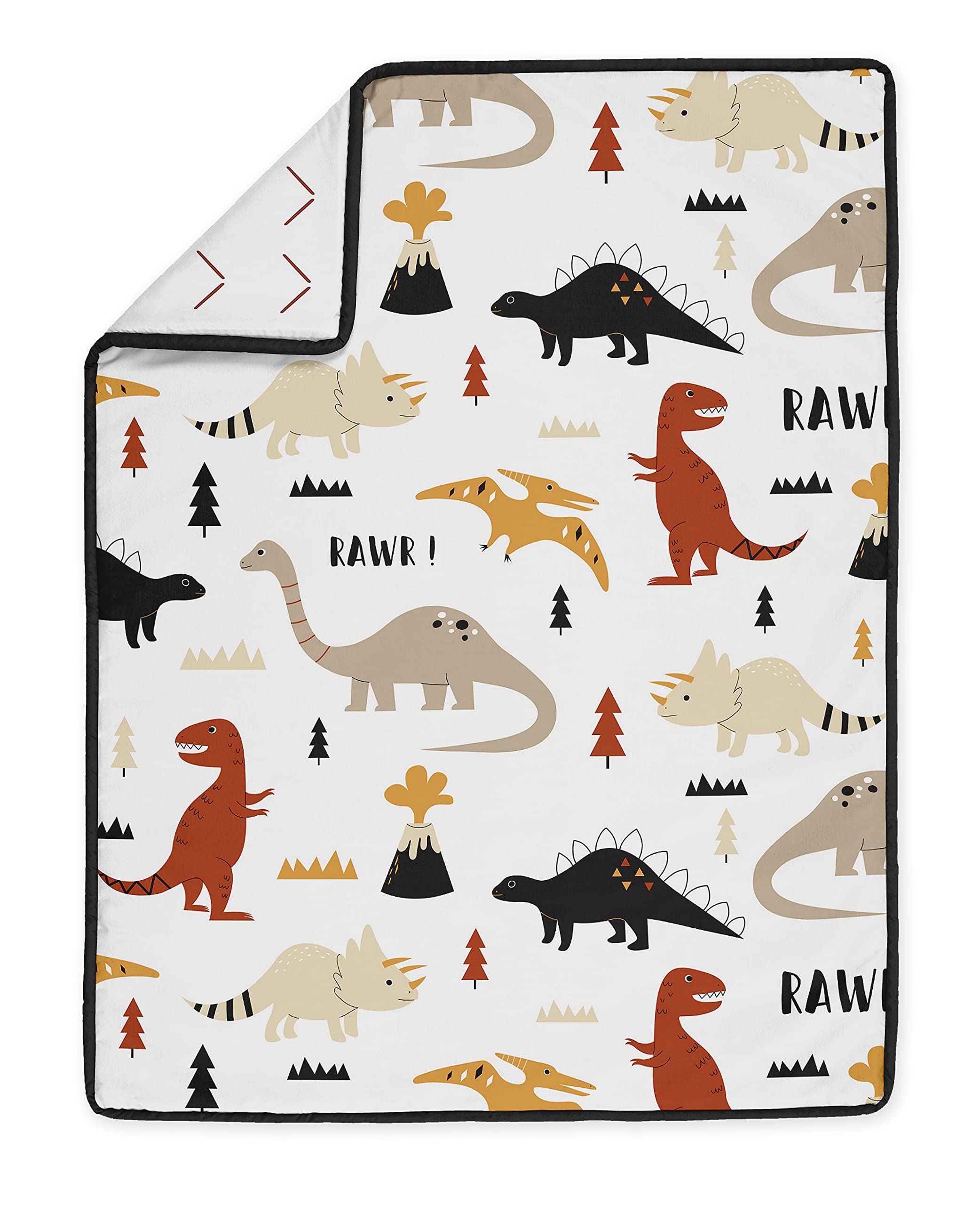 This set boasts a multicolored dinosaur print, a boho inspired arrow print, and solid coordinating fabrics