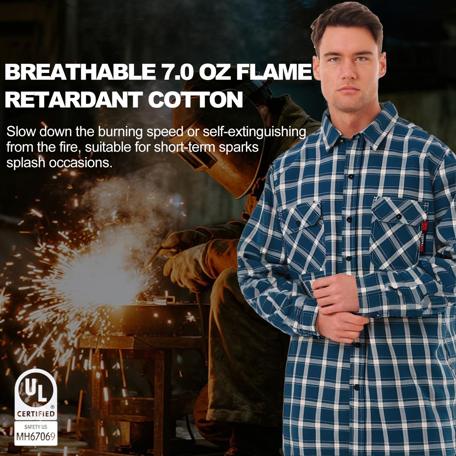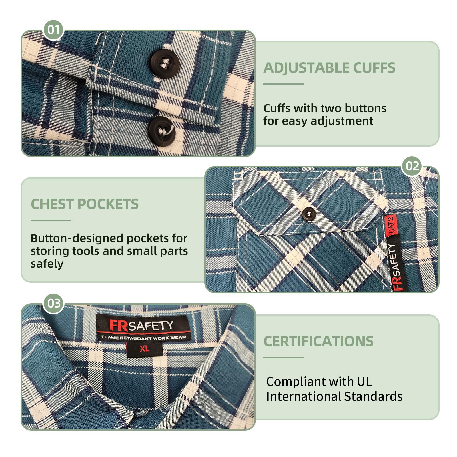 [Full protection]: Our frc shirts provide the necessary protection against flash fire and short duration thermal. This garment resists ignition when exposed to flame orelectric arc and will not continue to burn when removed from the ignition source.
