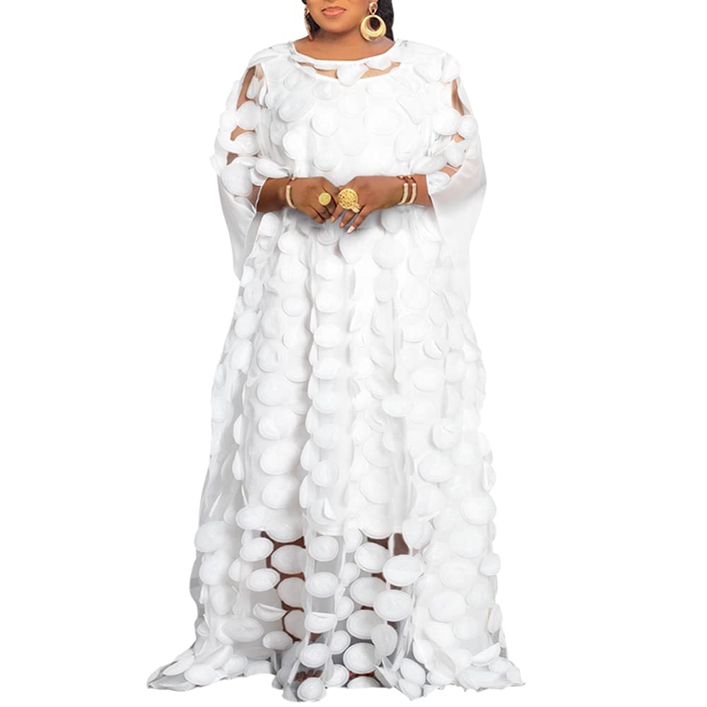 Feature: Applique long white african dresses for women elegant for church, ladies caftan gown