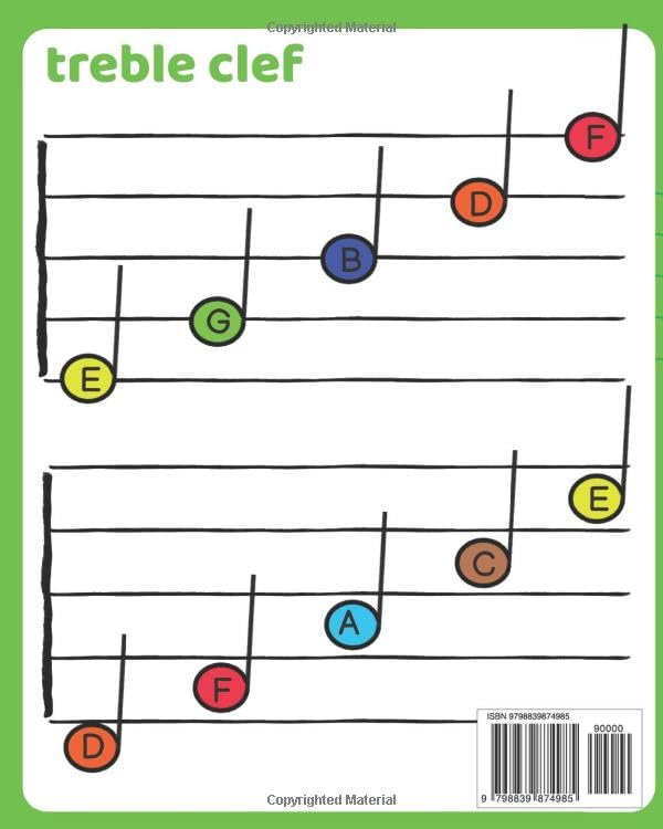 Learn how to read musical notes in treble clef by coloring notes with the right color (see back-cover for colors).In this book, you can find some color-based activities. The idea is to use colors to learn the musical stuff, so could be a good idea to buy a different coloring book that has an educational purpose. Although it has an educational purpose, this is a coloring book, not a teaching book.