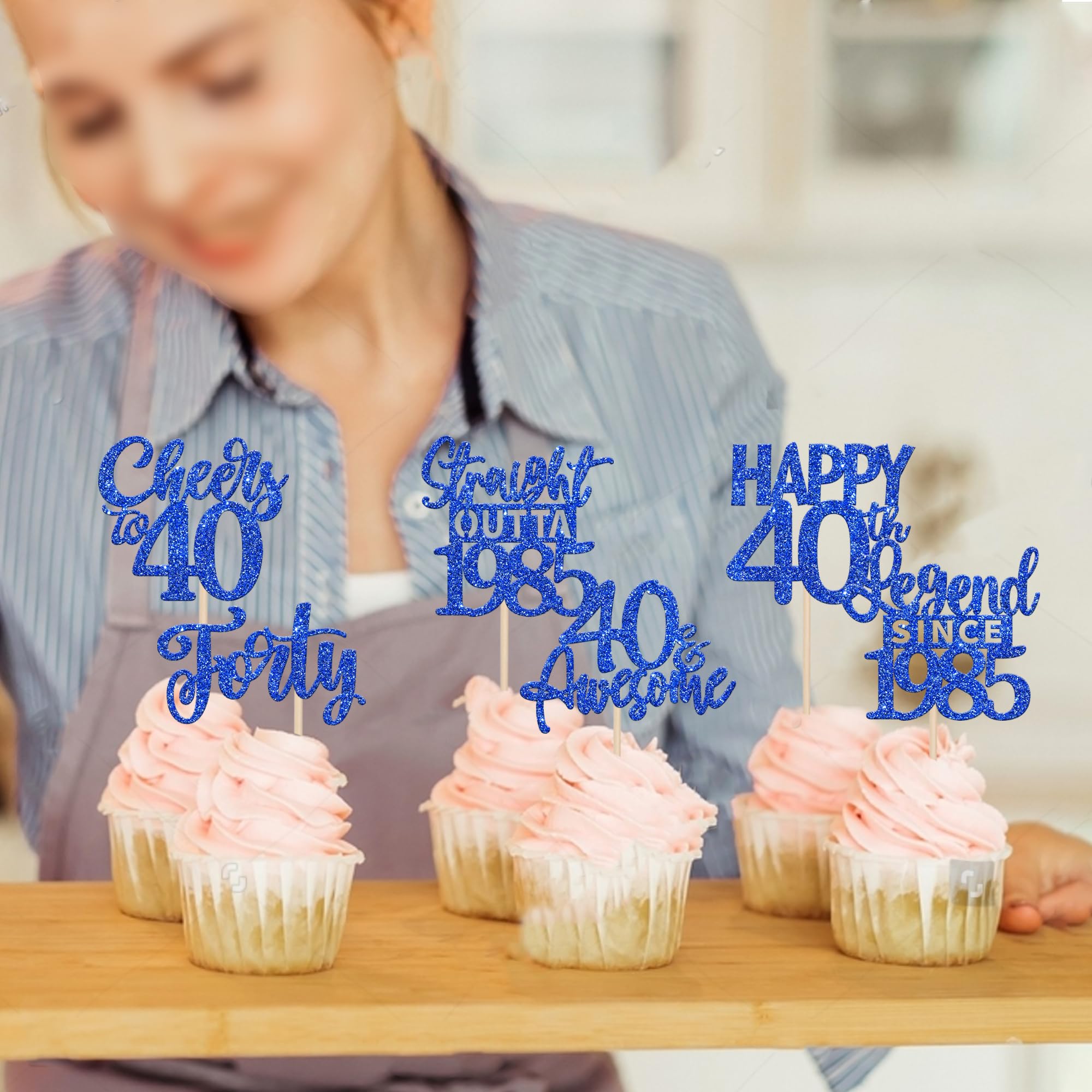 24PCS Happy 40th Birthday Cupcake Toppers Forty Straight Outta 1985 Cupcake Picks Cheers to 40 Birthday Decorations Lengend Since 1985 Cupcake Decorations for 40th Birthday Anniversary Party Cake Decorations Supplies Perfect for legend since 1985 theme party, 40th anniversary theme party,cheers to 40 years theme party, 40 awesome theme party cupcake decorations supplies. Pack of 24 pcs,4 pcs of each design. The size is 2.3*4.5/ 2.4*4.5/ 2.7*4.5/ 2.4*4.7/ 2.6*3.9/ 2.4*4.7 inch ( with stick ) Made of high quality paper card stock,thick and sturdy. These straight outta 1985 cupcake toppers are one side glitter, another side is white, and they are intended for decoration only, please do not put them in oven or microwave. If the item you received has any defects, please contact us immediately.we will deal with it within 24 hours.