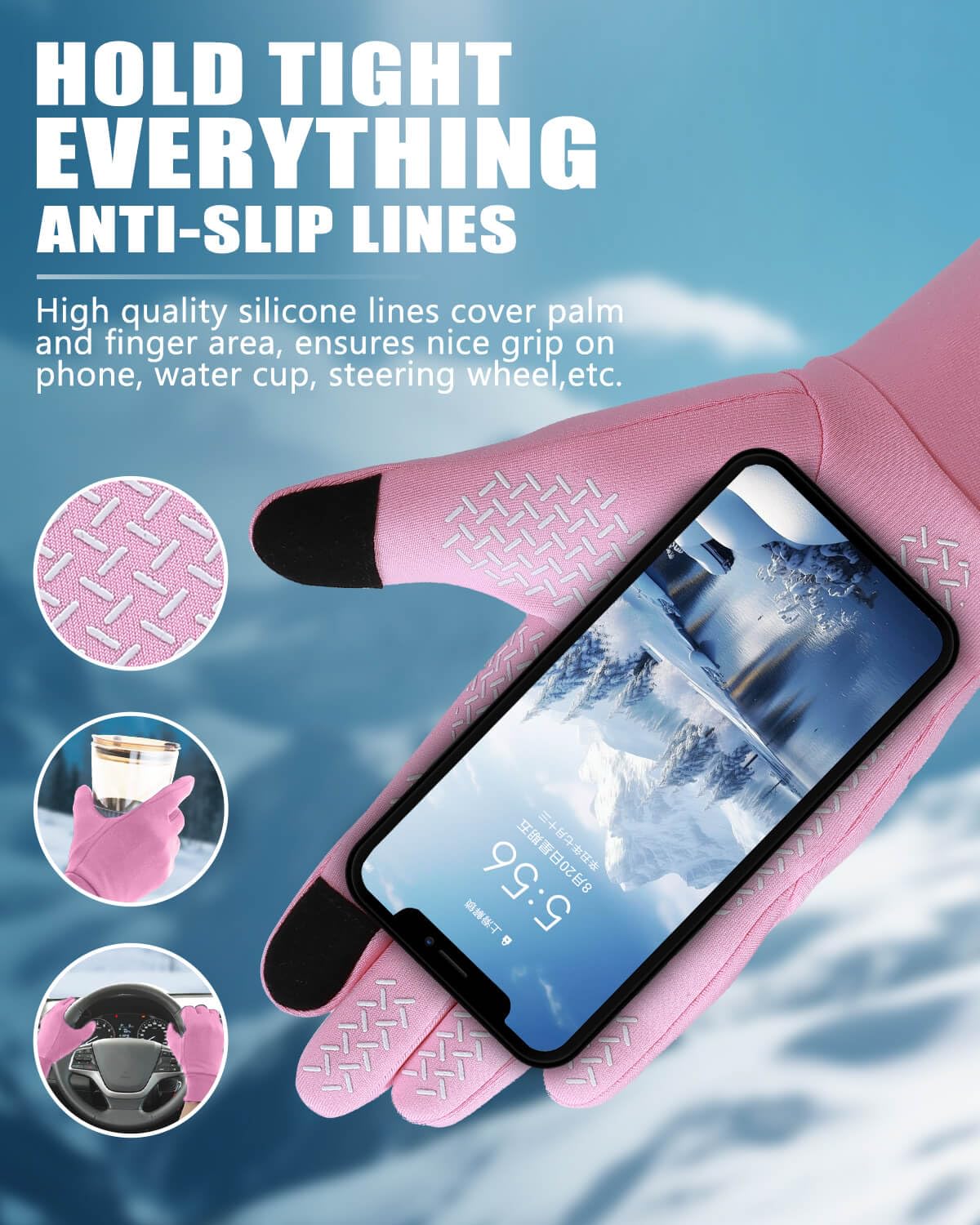 šćNon-Slip Palm Designć Covered with anti-slip design of big silicone lines on the palm and fingers, which effectively increases the grip and abrasion resistance of Aegend thermal winter gloves. You can grip things firmly to ensure safety. Such as gripping the steering wheel firmly when driving, and holding your phone well to prevent it from falling and breaking.