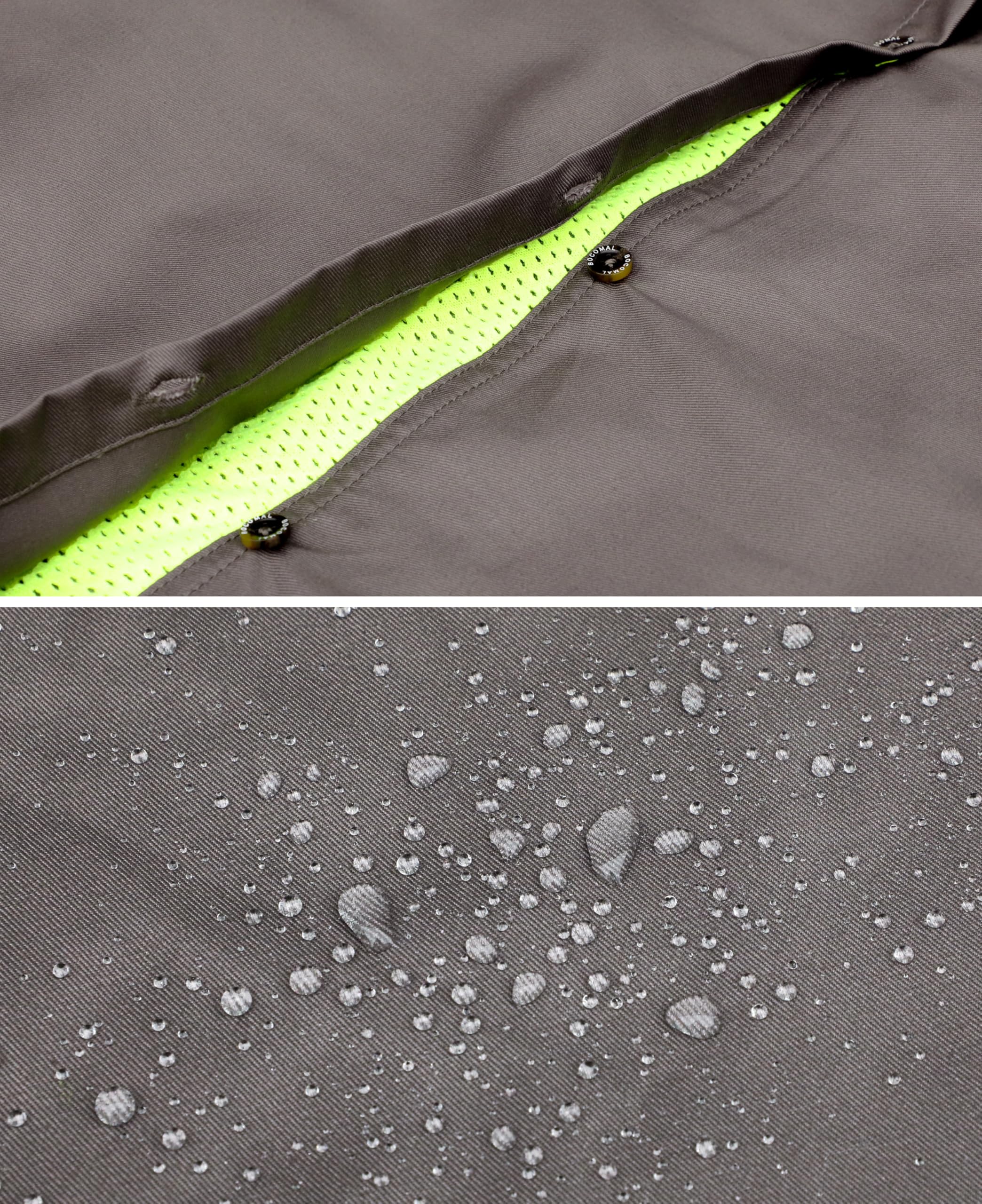 Water and Oil Repellent Finish 6.5oz lightweight cotton twill FR treated,Flame resistant Modacrylic/Cotton Blend mesh.FR buttons,FR aramid sewing threads! clearly FR tag on pocket.Prewashed Preshrunk and Wrinkle-Free.