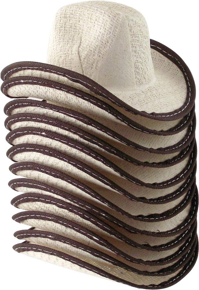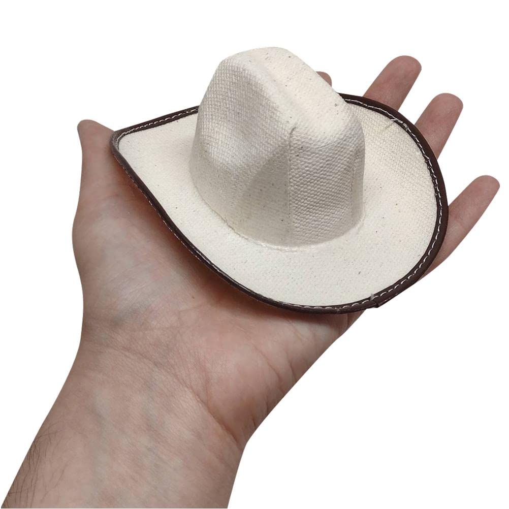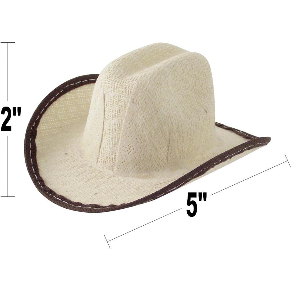 Small 2 inch tall Mini cowboy rodeo hats for party favors in your party. Package comes with 12 mini hats. May be use used in centerpieces, brooches, and also make a perfect fiesta party favor and tops for your salsas and beers. Made in Mexico.