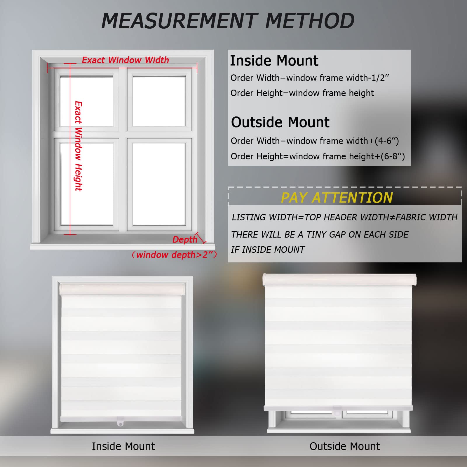 [Custom Cut To Size] Custom width from 18"to 80"; Max height is 80". 【For Inside Mount】You need to measure the exact opening to the 1/4th of an inch and tpye the exact width. Please take a 1/2 inch deduction off for inside fitting.