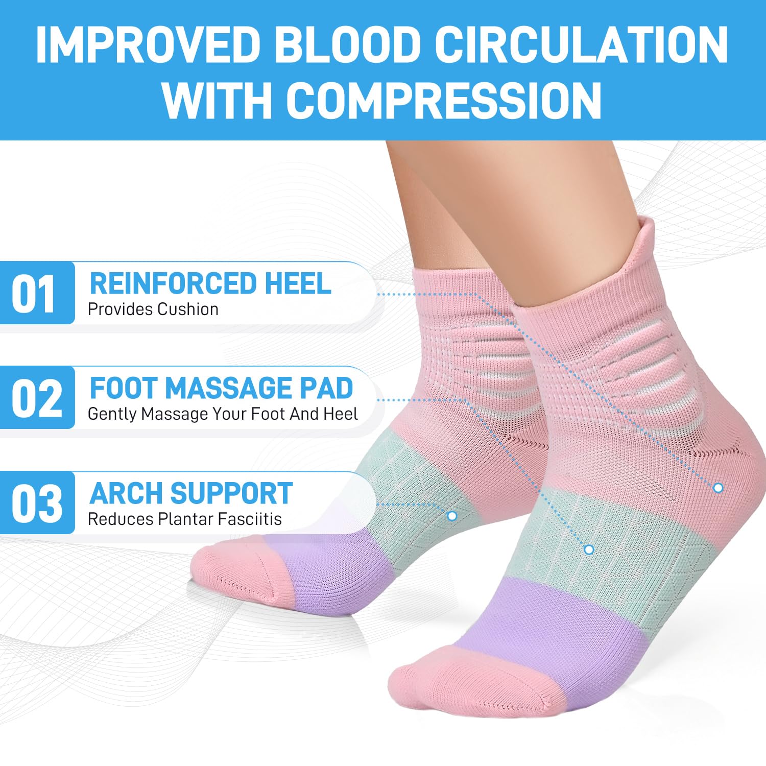 [Ankle Compression Support]IRAMY Compression Socks For Women offer premium ankle and arch support for enhanced athletic performance and reduced pain associated with various ailments. Featuring high-end air knitting technology and 6 compression rings at the ankle, our socks provide ultimate protection and comfortable full range compression. Even pressure around the ankle joint reduces muscle fatigue and swelling from plantar fasciitis.