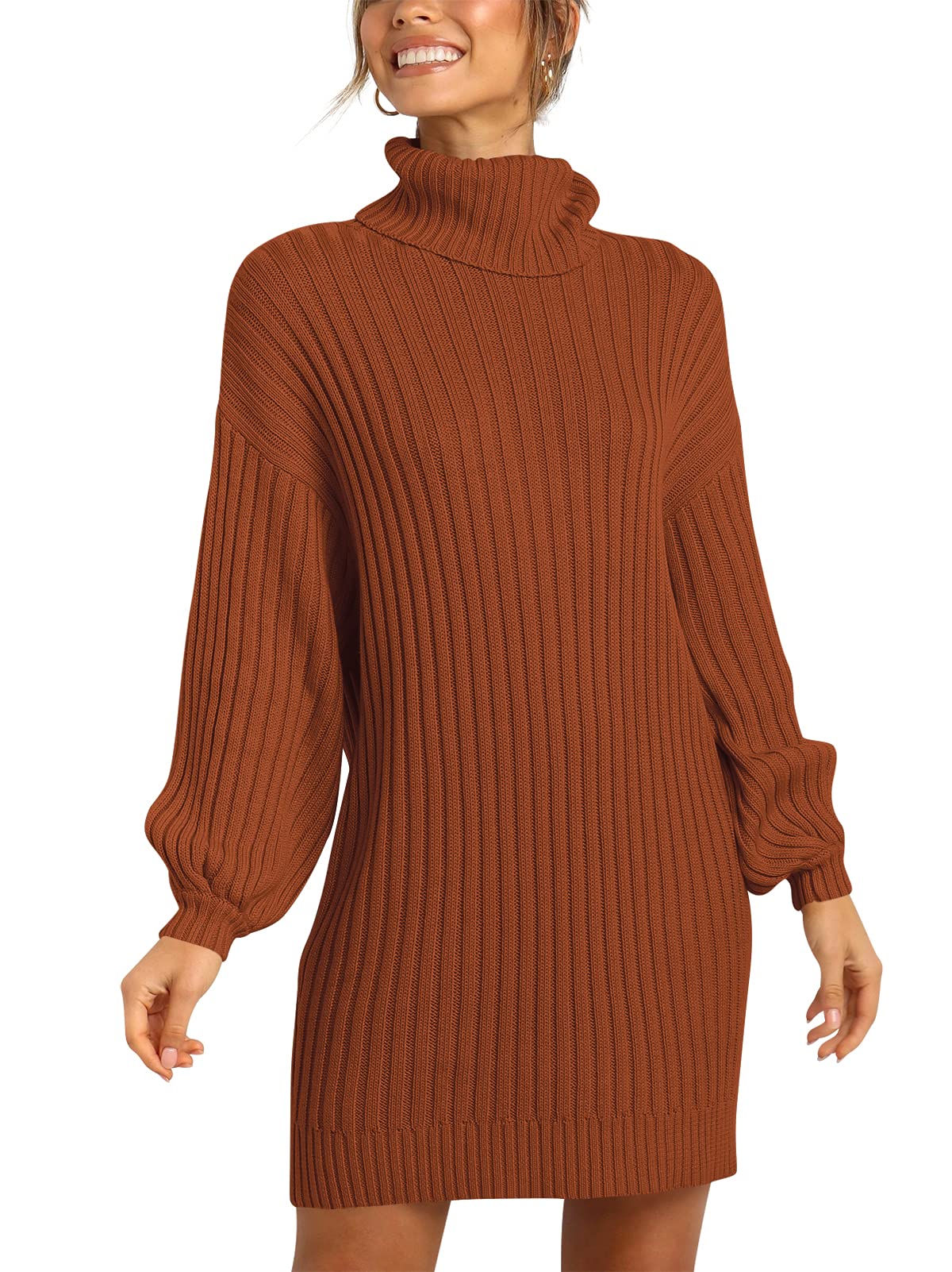 Features - Women's sweater dress, turtleneck neck, batwing long sleeve, knitted. This women's oversized dresses perfect for daily wear outdoor wearing, dating, casual, office; Great with high heels, boots etc