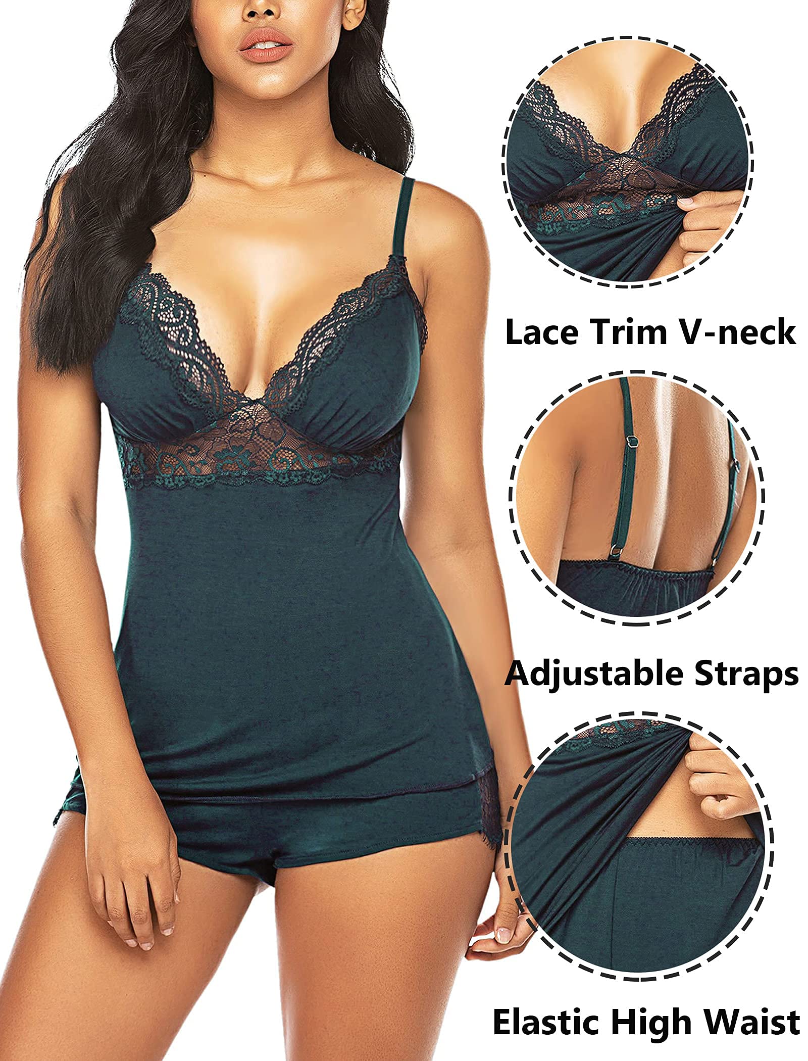 📏Model-Specific Sizing Reference:Our Model (Size:S): Height 5'9, Bust 36", Waist 24", Hips 36". Package: 1 cami + 1 shorts. Follow your usual US sleepwear size – detailed measurements in images.