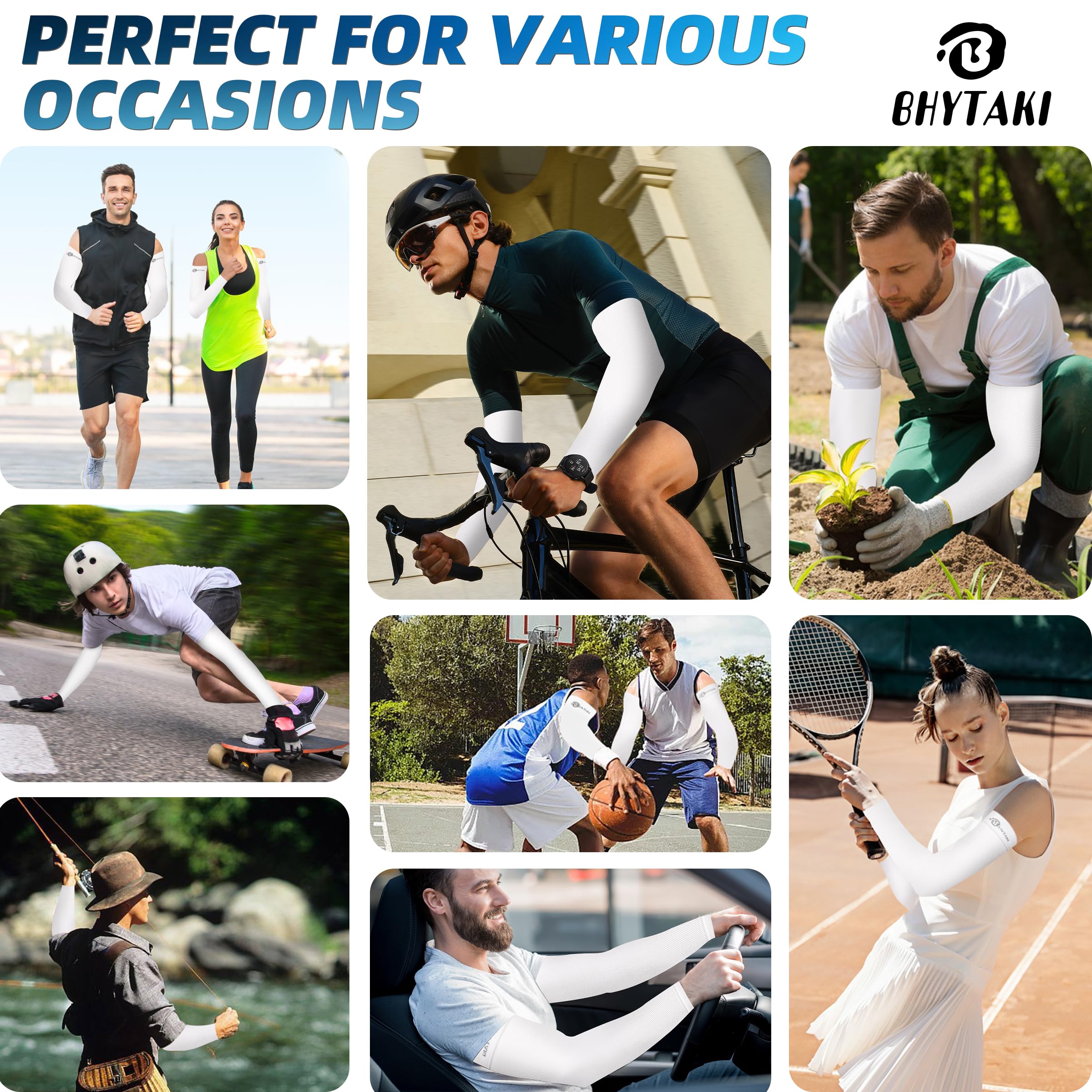 【Arm Sleeves UPF50+ Protection Design】Our arm sleeves set contains 4 pairs of White. Our UPF 50+ sun sleeves for men women are made of high-quality soft fabric with added anti-ultraviolet ingredients , can really block up to 98% of harmful UVA and UVB rays, can block harmful sunlight when playing golf, shooting, running, cycling, gardening, working, etc., and prevent skin from sunburn and aging.