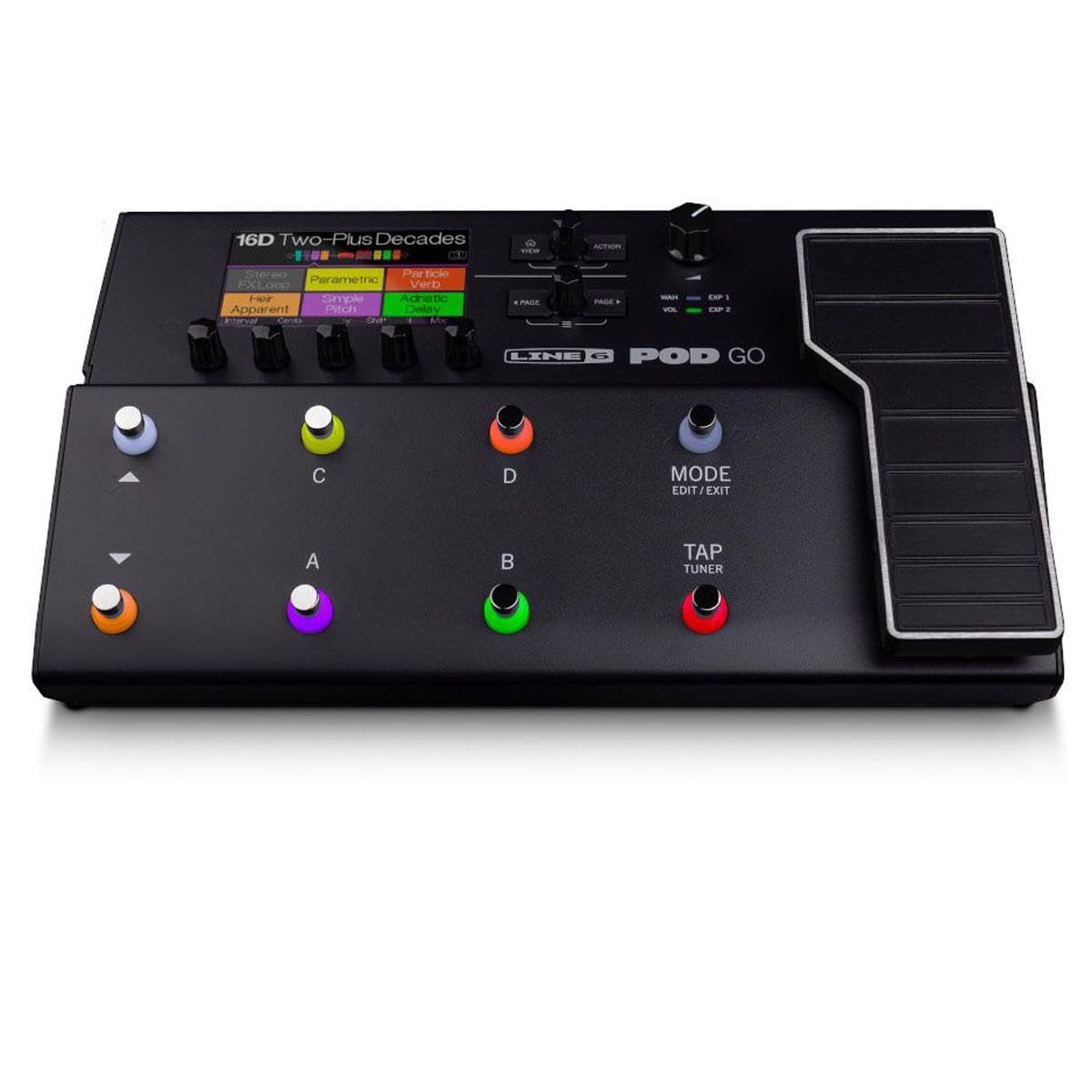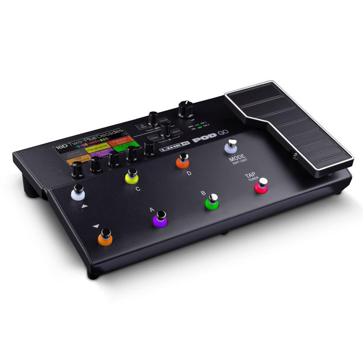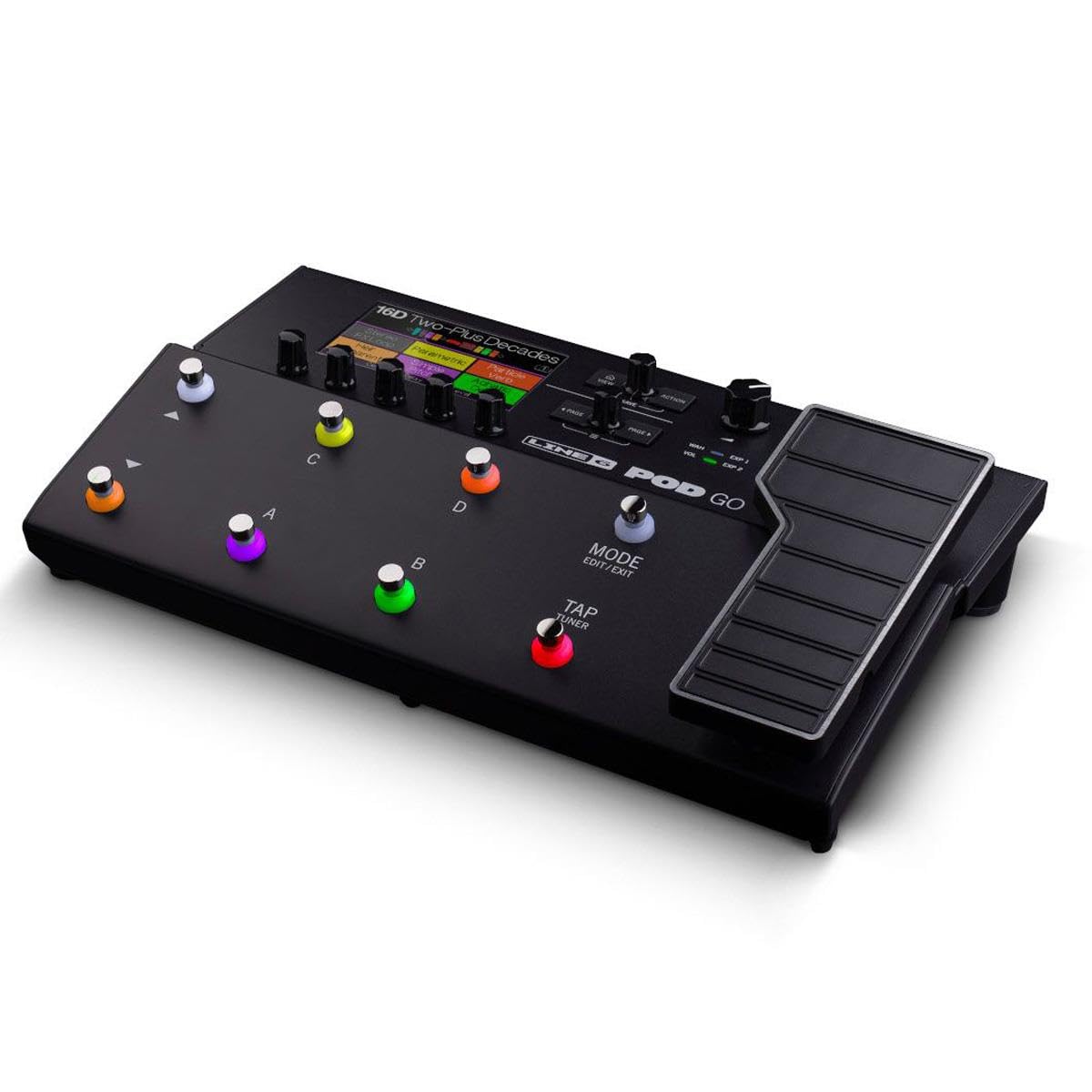 With its simple plug-and-play interface, ultra-portable lightweight design, and best-in-class tones, the POD Go guitar processor gets you on the road to ultimate tone. Choose, edit, and control sounds using the large color LCD screen, five push encoders, eight rugged footswitches, and cast-aluminum multi-function expression pedal—and add two external footswitches or a second expression pedal for even more real-time control. All the essential audio connections are at your fingertips, too, including balanced stereo outputs, a duplicate amp out that can be tapped before the Cab/IR, a stereo effects loop, a headphone jack, and even a USB port for accessing the 4-in/4-out audio interface with re-amping. In addition to its professional-quality amp, cab, and effect models drawn from the acclaimed HX family of effects processors, POD Go supports third-party IR loading, and sophisticated features such as Snapshots enable you to easily access all the tones you’ll need to cover every section of every song. With POD Go, you won’t just take the stage—you’ll own it