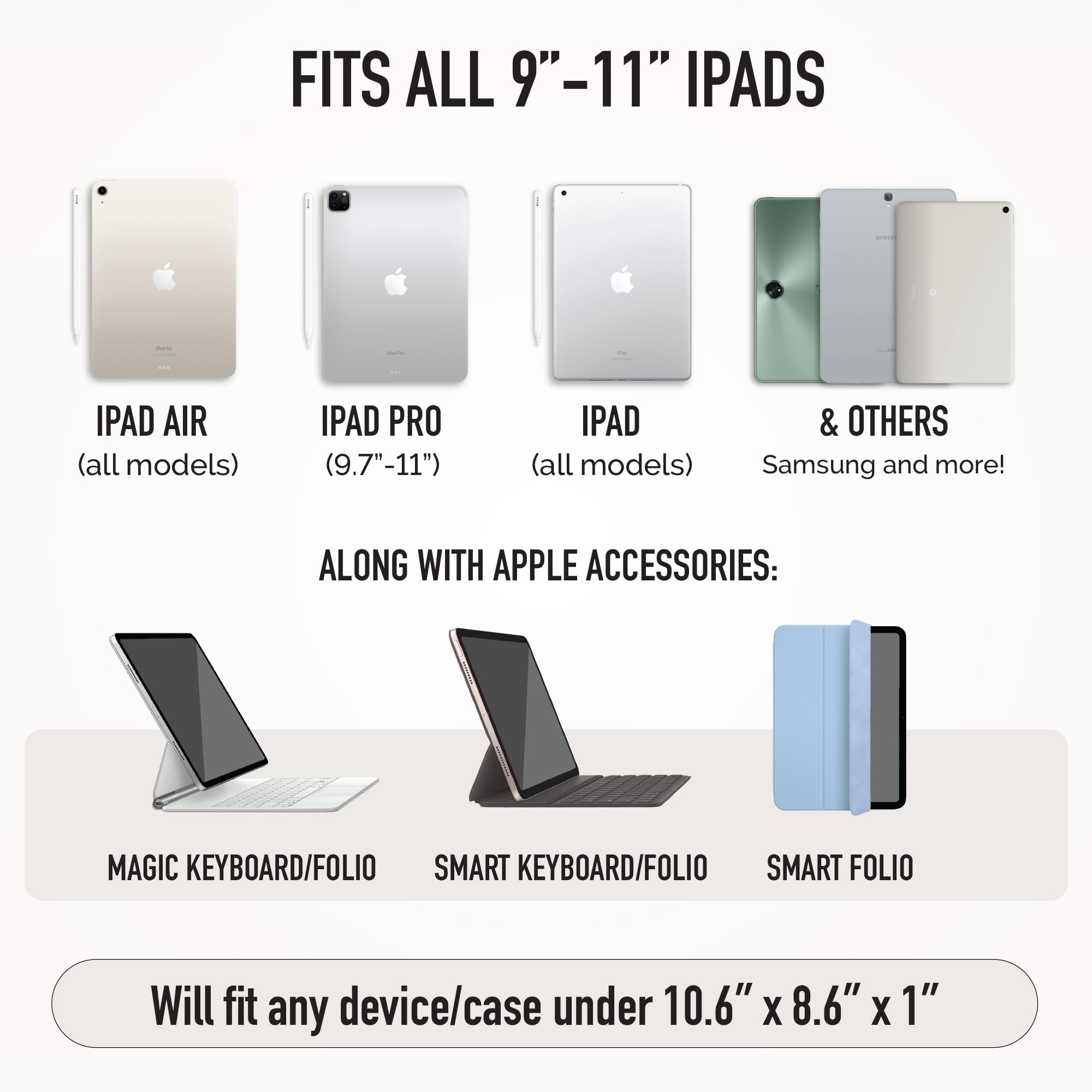 COMPATIBLE WITH ALL 9-11INCH IPADS: Including iPad Pro 11 Inch, iPad Air 6th Generation, 5th Generation, 4th Generation, 3rd iPad 10th Generation, 9, 8, 7, 6, 5, Samsung Galaxy Tab S8/A8/A7/S3 + more