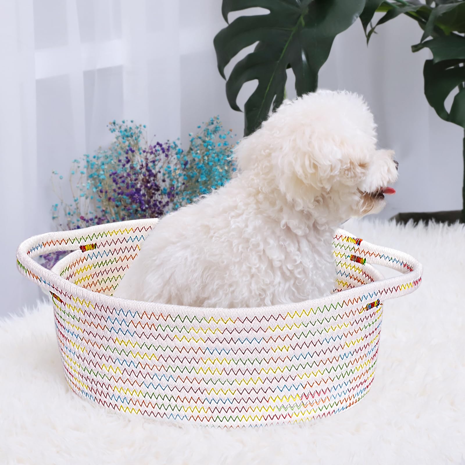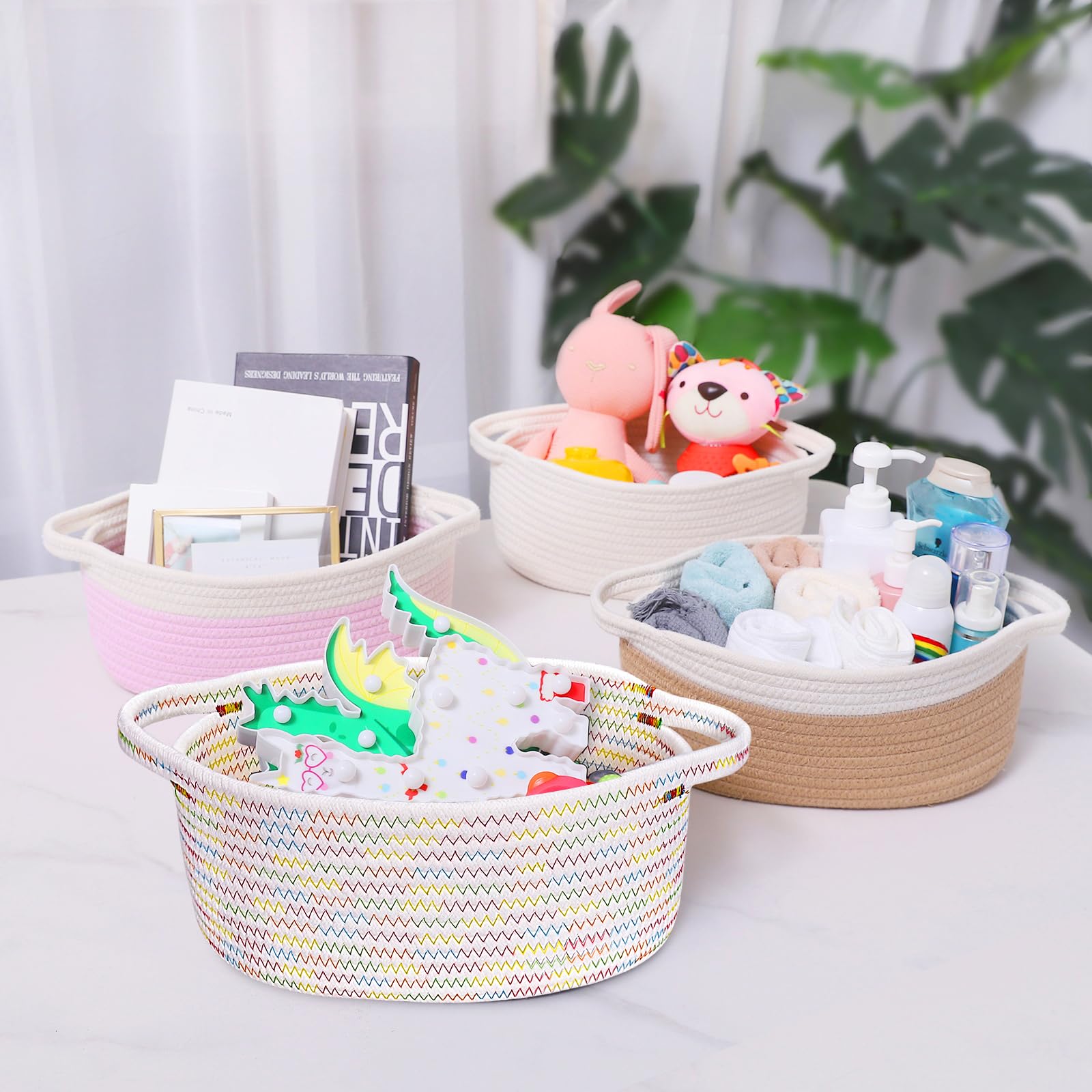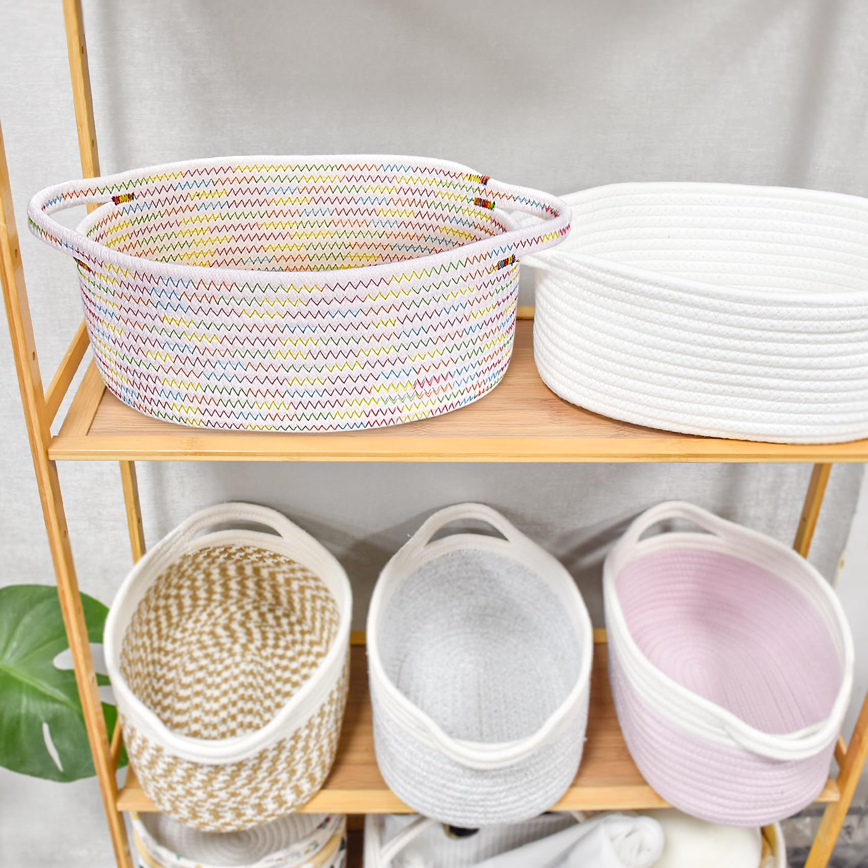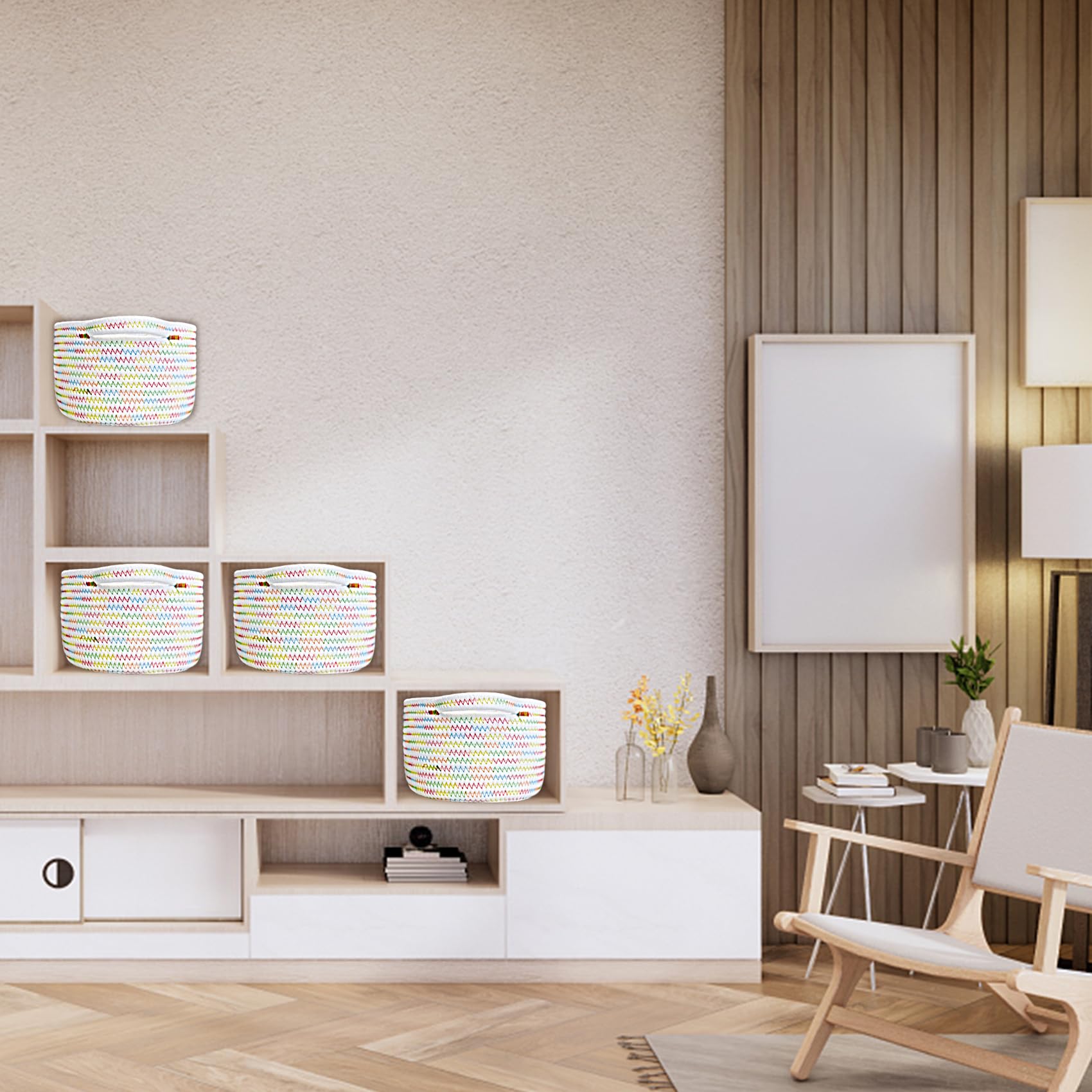 Made of durable cotton rope, natural, chemical-free, skin-friendly, woven basket safe for baby and pets, scratch-free to floors or walls