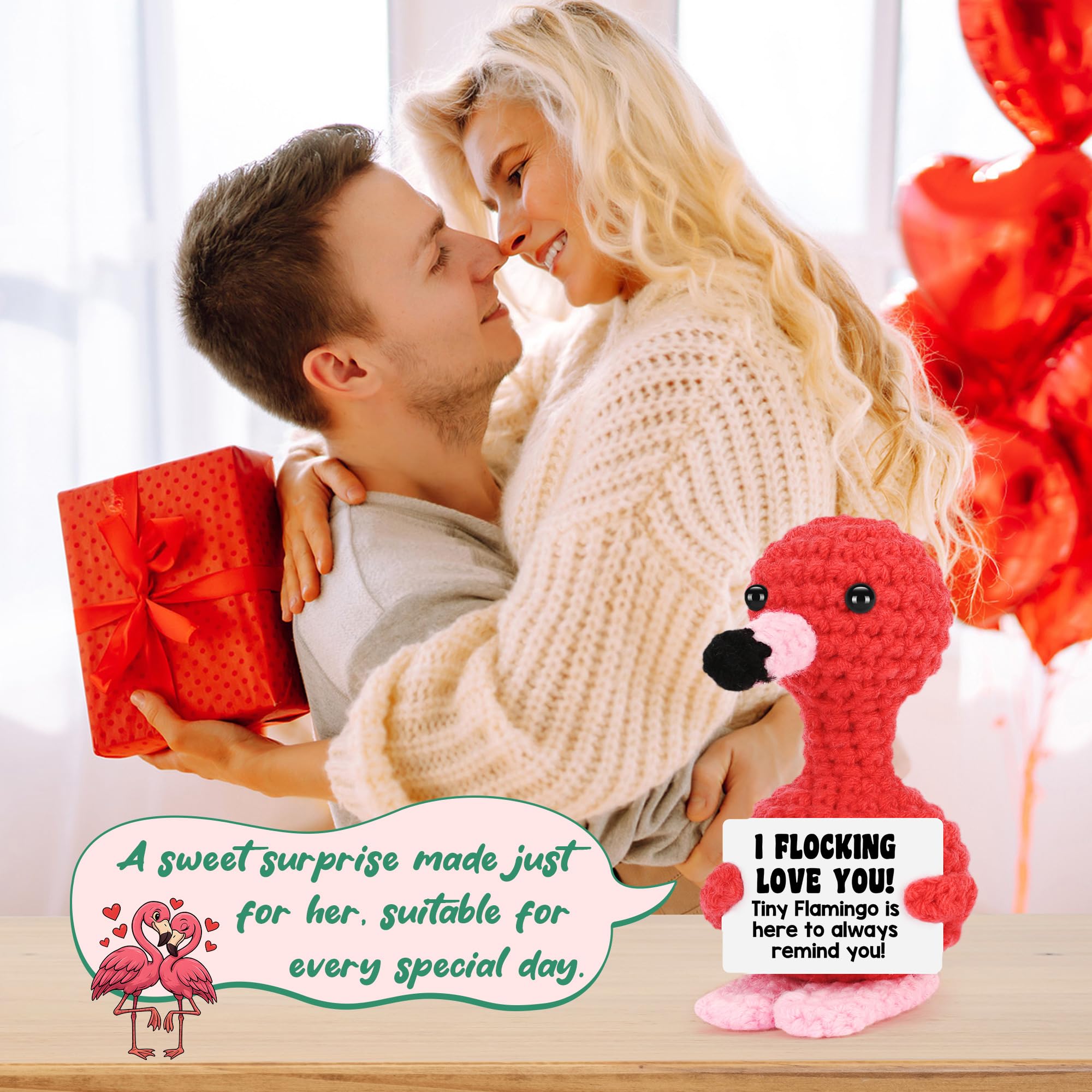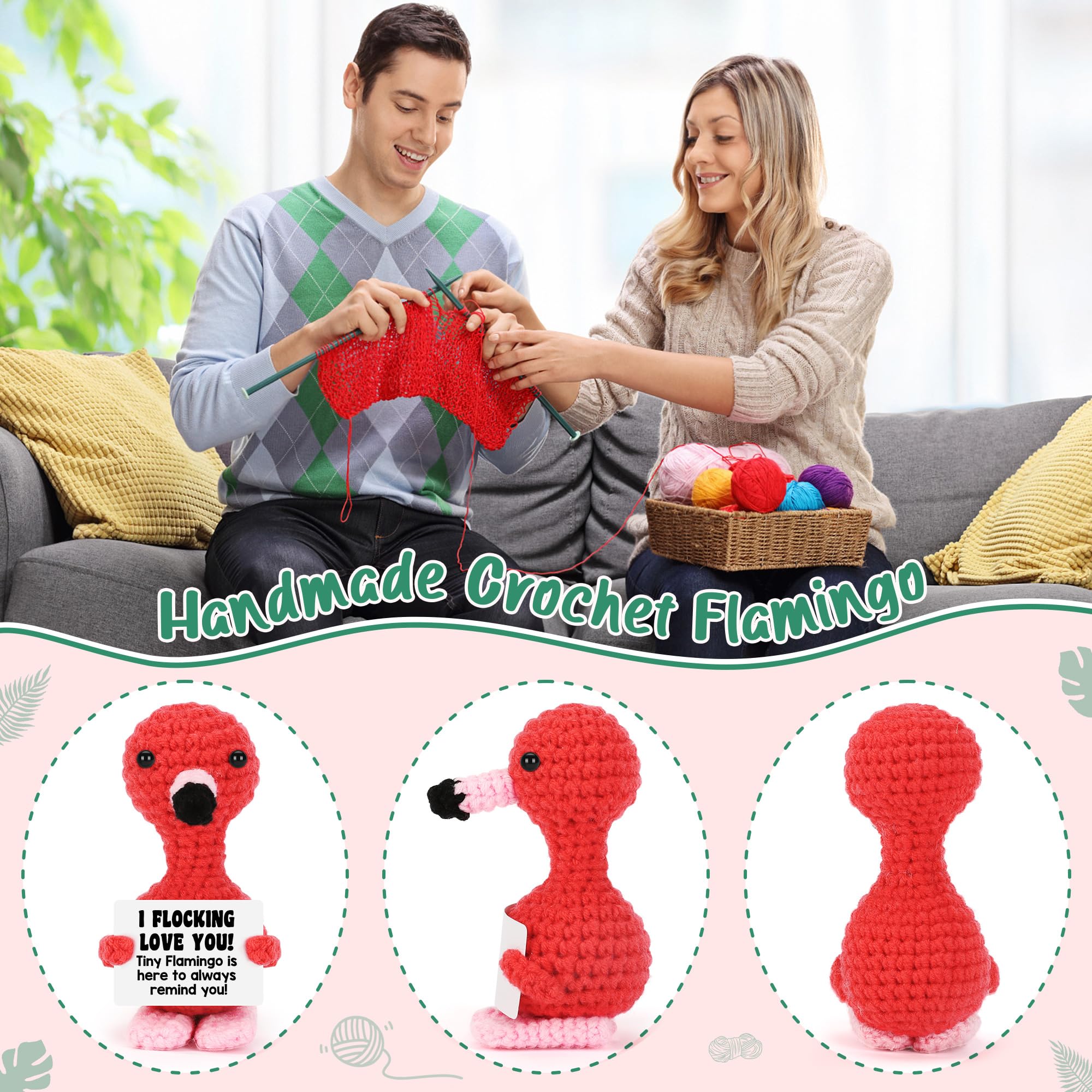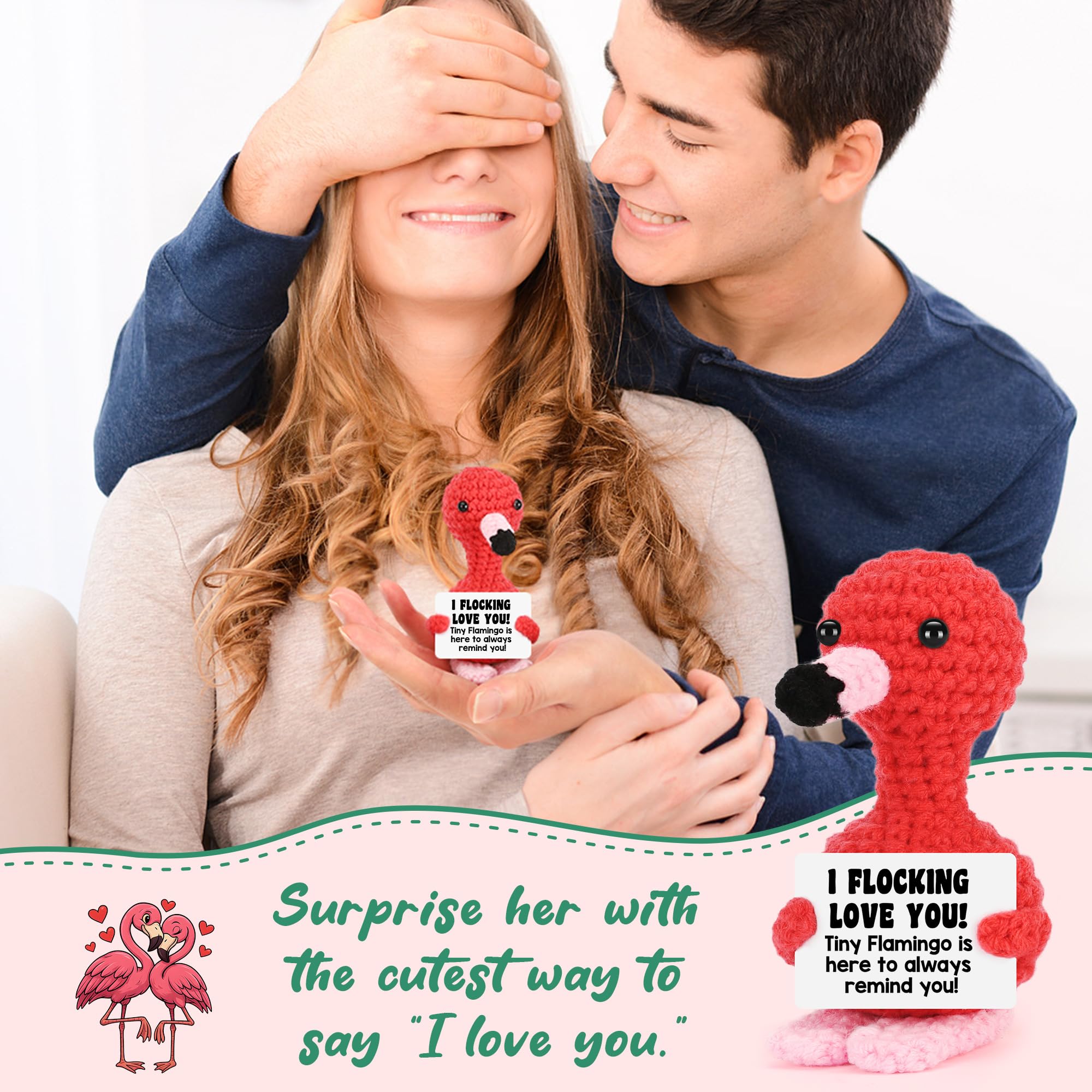 A Funny and Heartwarming Gift for Loved Ones -Express your feelings with this unique combination of humor and love! The card features the playful message “I Love You,” making it a perfect funny love expression or cute humor gift for someone special. Whether it’s a thinking of you gift, apology token, or just a romantic love token. The handmade crochet flamingo with a adorable design. Great for gift-givers for partners, it’s both heartfelt and entertaining, making every moment memorable