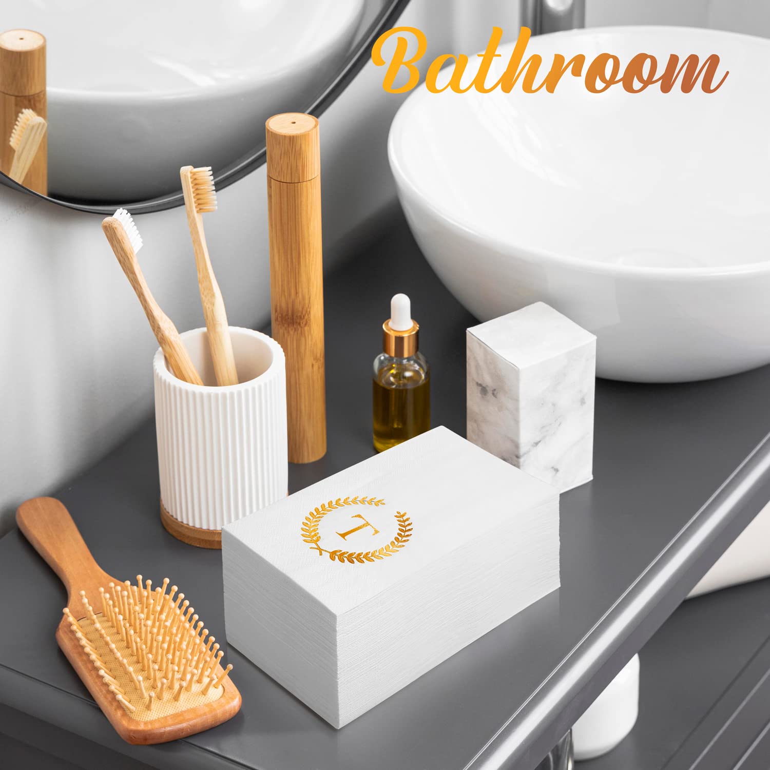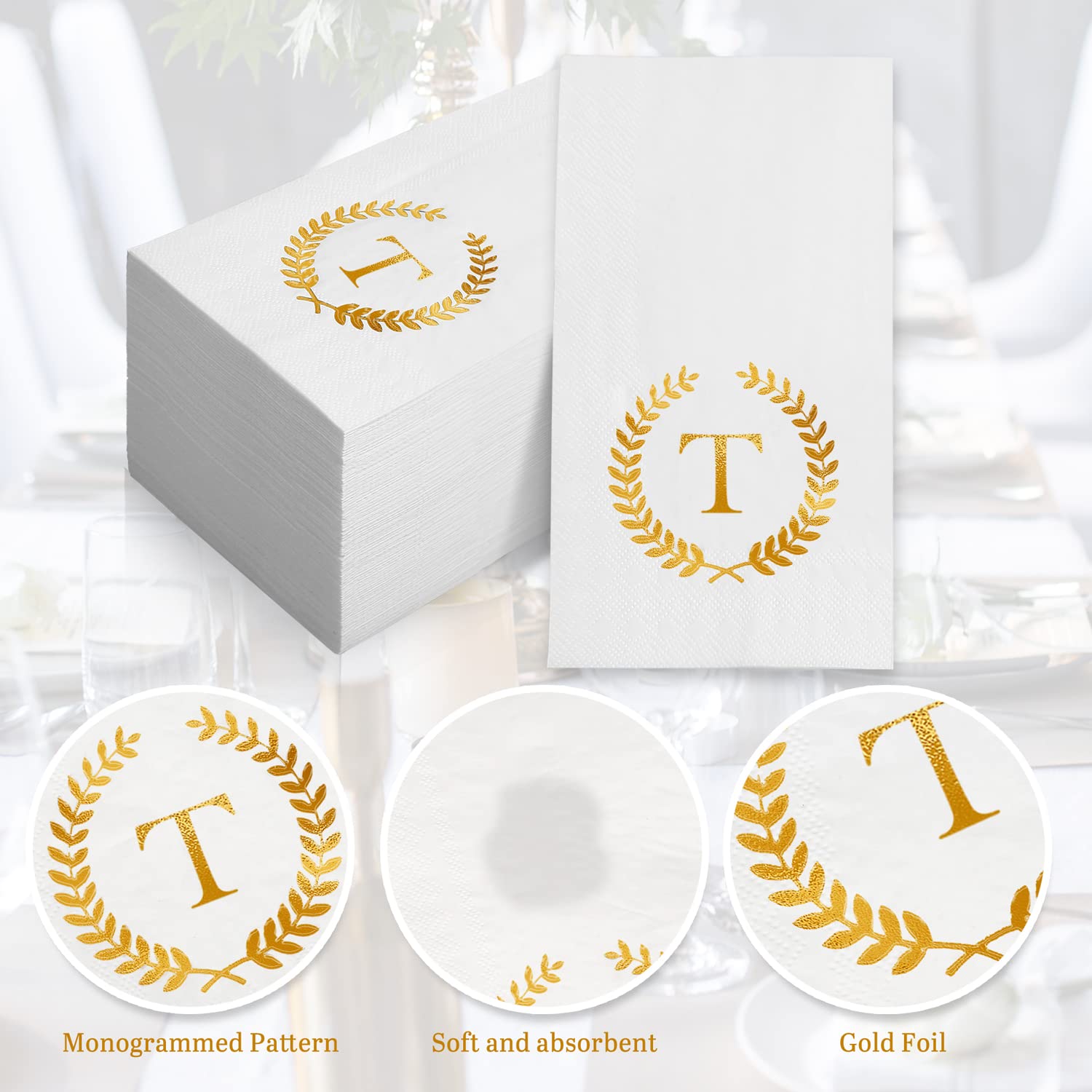 Package Includes: 200 packs of monogrammed guest napkins, which are printed with gold foil letter T and wreath pattern; these delicate disposable hand towels are abundant in quantity to meet your various daily or event party needs