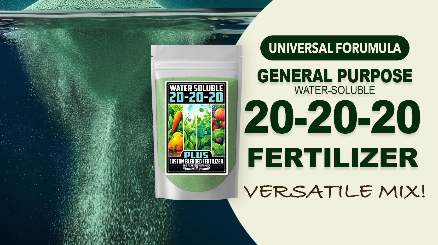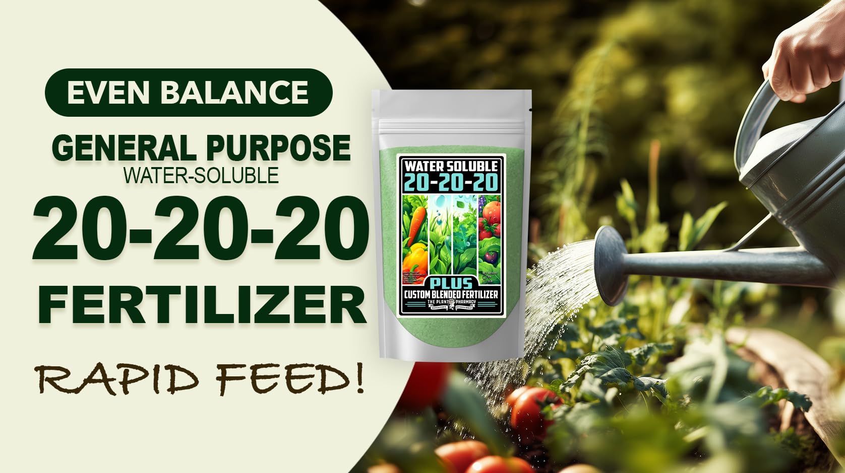 20-20-20 Plus is a custom-blended, water-soluble fertilizer designed for broad landscape and agricultural application. This complete, balanced formula delivers equal parts nitrogen, phosphorus, and potassium along with chelated micronutrients for improved nutrient availability. Suitable for lawns, turf, ornamental shrubs, and field crops, it supports steady plant performance across a range of growing conditions. Can be applied as a foliar or soil spray during active growth periods. The formula includes iron, manganese, boron, copper, zinc, and molybdenum in chelated forms to ensure availability across pH ranges. It mixes easily with water and may be used in regular feeding schedules throughout the growing season. Whether applied through spray tanks or irrigation systems, this general-purpose fertilizer promotes consistent foliage color, vigorous growth, and balanced nutrition. Always apply according to local regulations and university best management practices