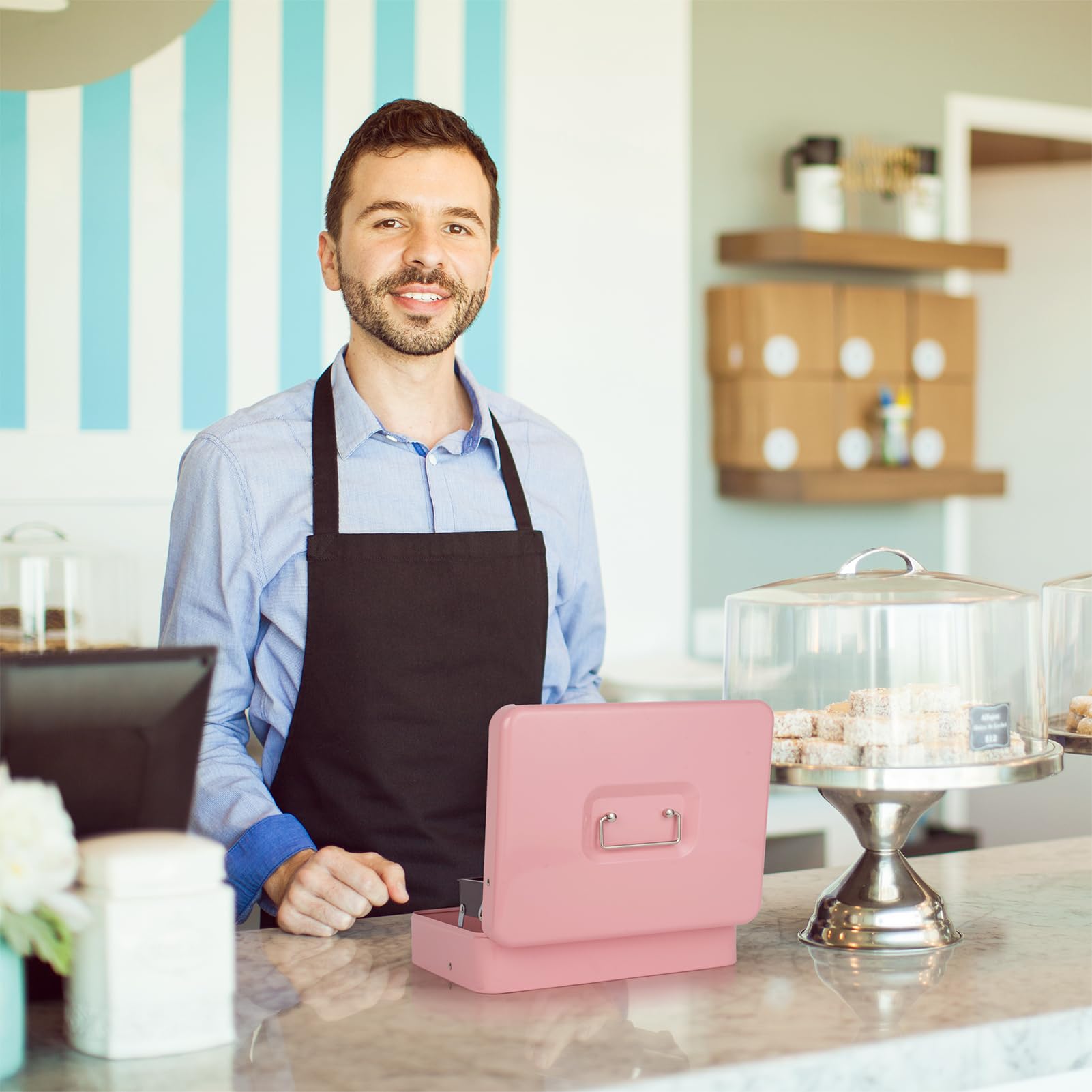 WIDE APPLICATION: measuring 11.8" x 9.4" x 3.54", our money lock box for cash is ideal for daily cash organization, yard sales, garage sales, craft shows, or use as a money saving box, cash drawer, change box, or cash register for small businesses