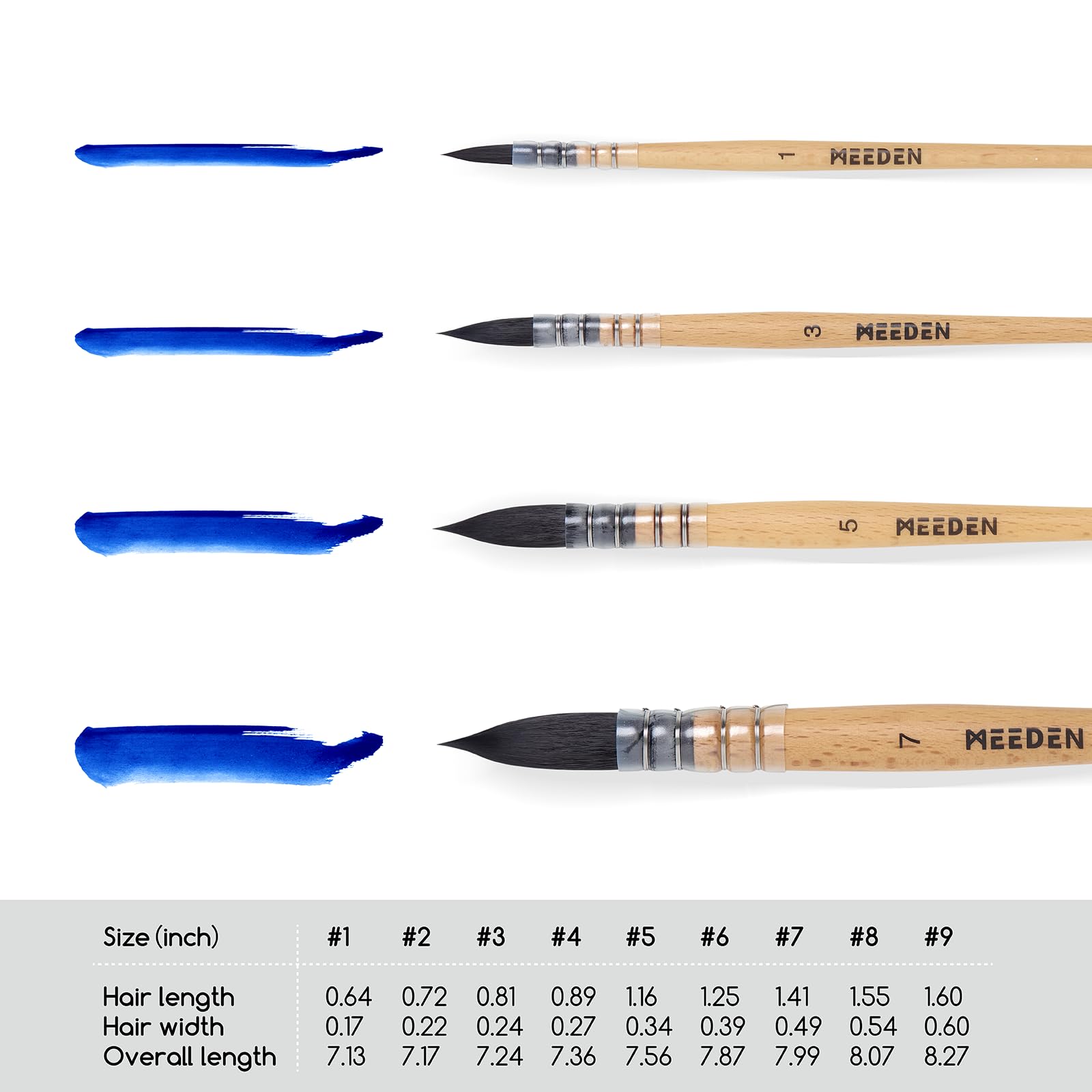 【Watercolor Paint Brushes】--- MEEDEN’s artist paint brushes set features 9 premium synthetic squirrel hair brushes designed to mimic the water-holding capacity and softness of natural squirrel hair. Perfect for watercolor, gouache, and ink techniques, these brushes deliver smooth, controlled strokes for artists of all levels. The durable beech wood handles ensure a comfortable grip, while the individual packaging keeps each brush protected for travel or storage.