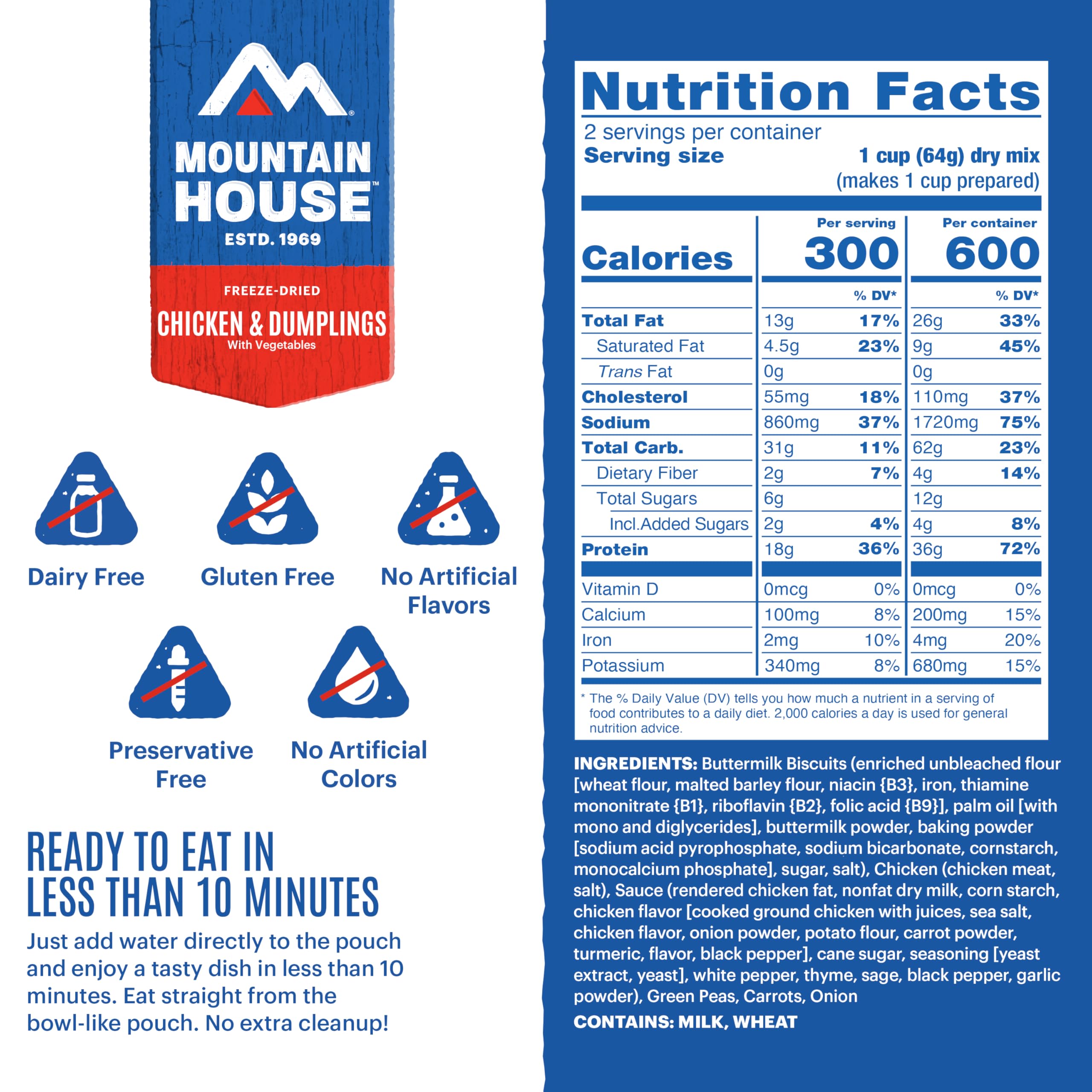 COMFORT FOOD FOR THE TRAIL - "When you're camping all alone, but it tastes like you're warm at home." The Chicken & Dumplings delivers premium taste and unmatched quality, perfect for adventurers, campers, and emergency preparedness.
