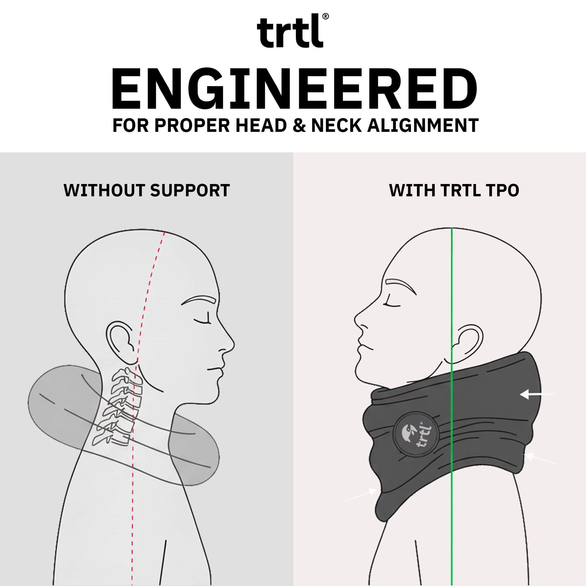 Scientifically Proven Plane Neck Pillow: Experience top travel comfort with trtl neck pillows! Our patented design ensures ultimate comfort and neck support, keeping your head upright while napping. The internal support system keeps your head and neck upright while you nap, preventing aches, strains, and pains.