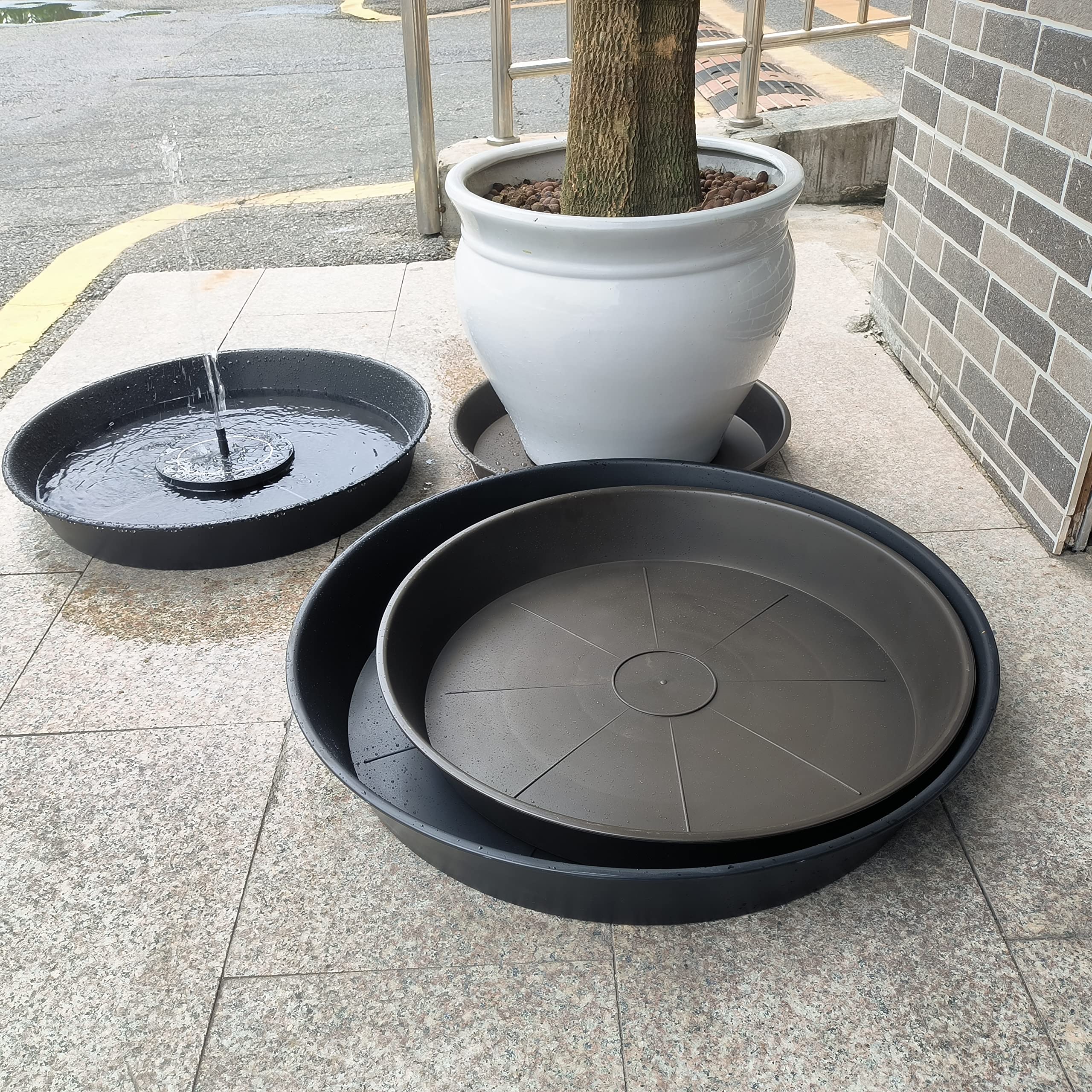 【PlANT SAUCER USE】These 16 17 inch plant saucers catches water overflow from flower pots and keeps your furniture and stains free. No fear of leakage from flower pots. Dark brown appearance will not affect any color matching with planters, plant water saucers and plant drip tray for indoors outdoor.