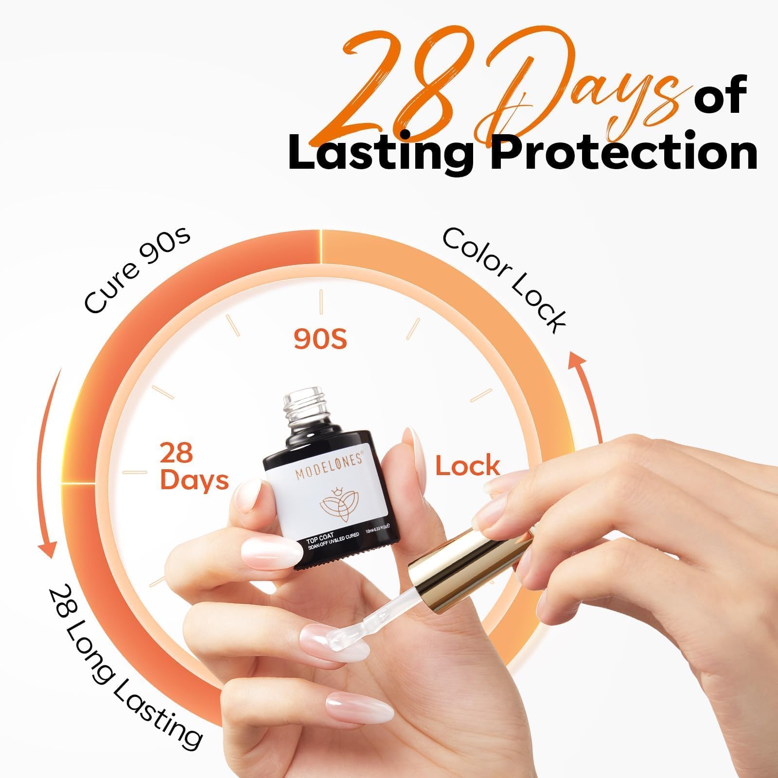 No Wipe Glossy Gel Top Coat: modelones top coat gel nail polish offers high-gloss, mirror-shine finish. Resists chips and scratches. Cures fast under nail lamp. Smooths evenly and seals any manicure for lasting wear up to 28 days