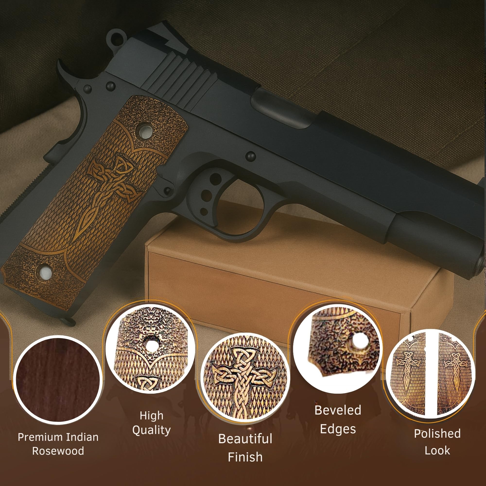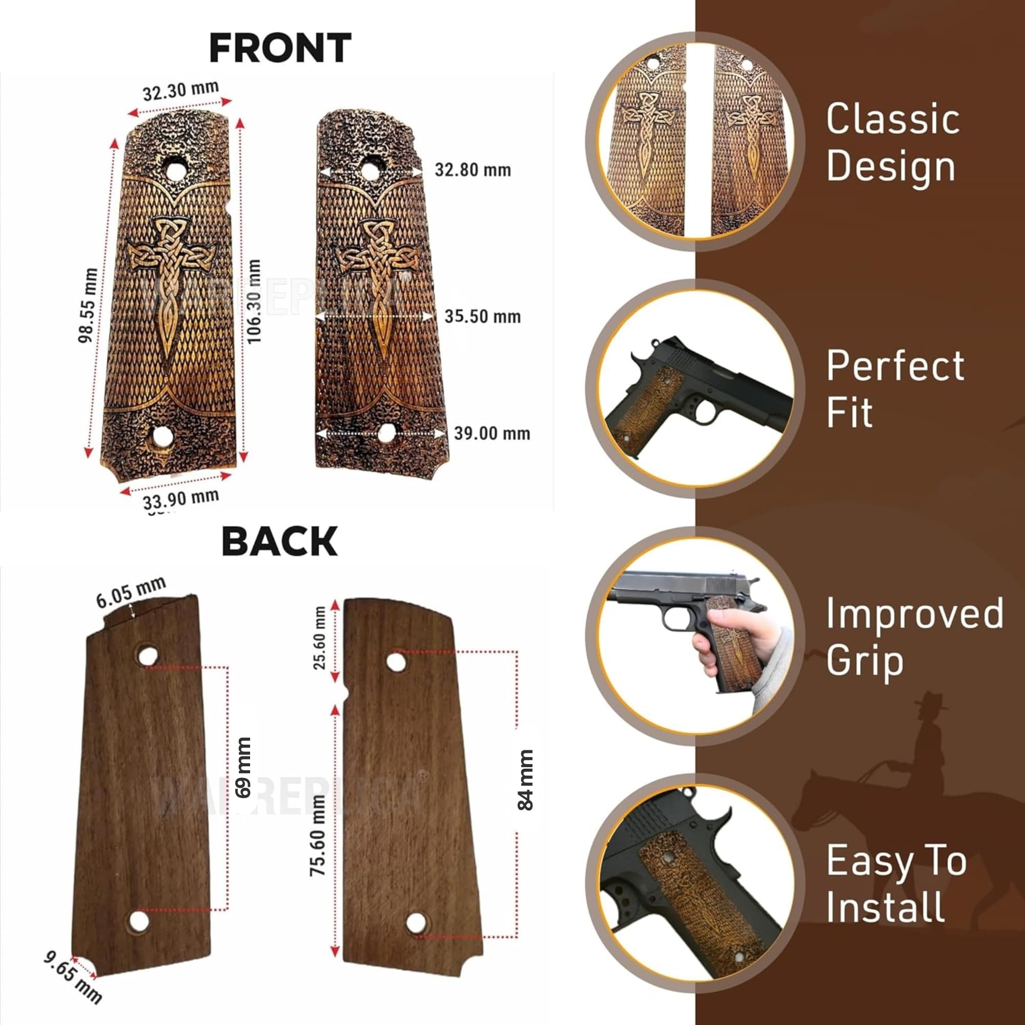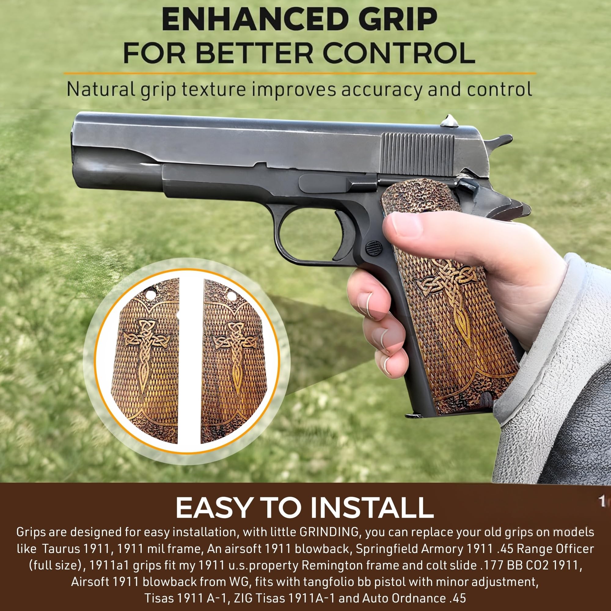 IMPROVED GRIP: The wooden material of these grips provides a natural grip that enhances your control and accuracy when firing your M1911/1911 .45. The improved grip helps reduce recoil and enhances your ability to maintain a steady aim, making them perfect for shooting enthusiasts.