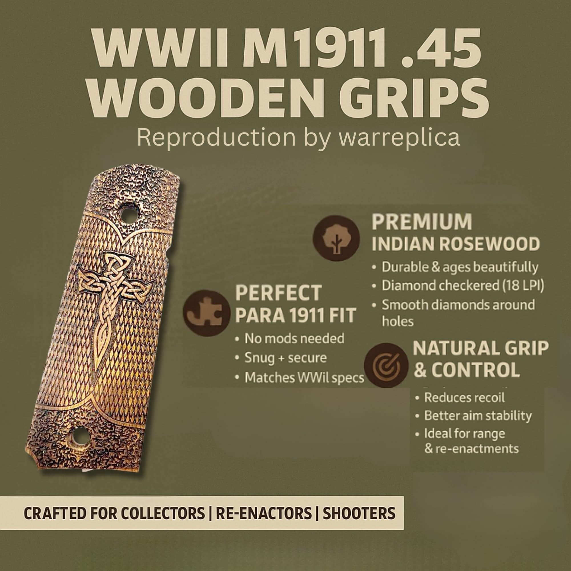 CLASSIC DESIGN: These wooden grips for the WWII US M1911/1911 .45 are meticulously crafted to provide a highly accurate reproduction of the original grips used during World War II.