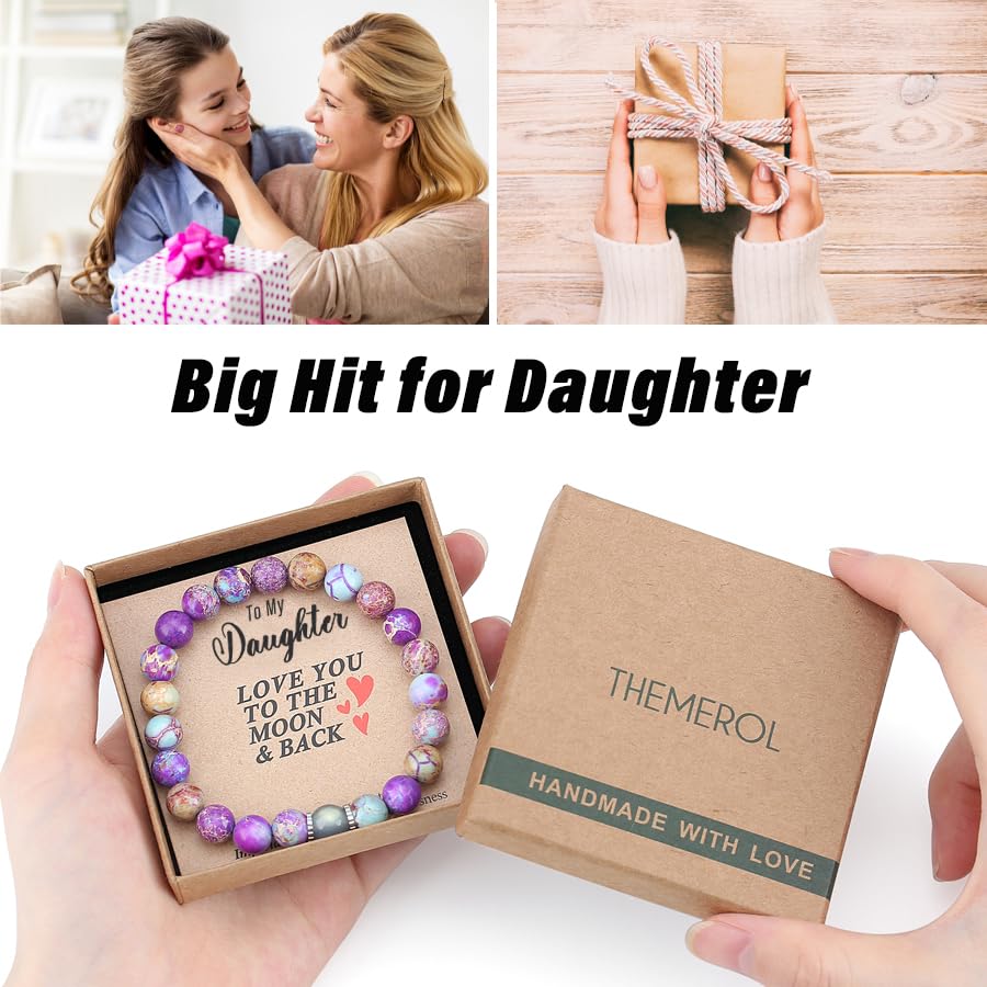 【Unique Design & Solid Craftsmanship by Great Artisan】Every natural bead is high quality genuine gemstone and has been carefully selected manually one by one. Original design and coming with meaning card which is especially for daughter makes your gift unique and a big hit to her. Solid Craftsmanship make sure it's super comfortable for dailywear and will not easily fall off/come apart. This meaningful and beautiful crystal bracelet can be worn and protect her for a long time.
