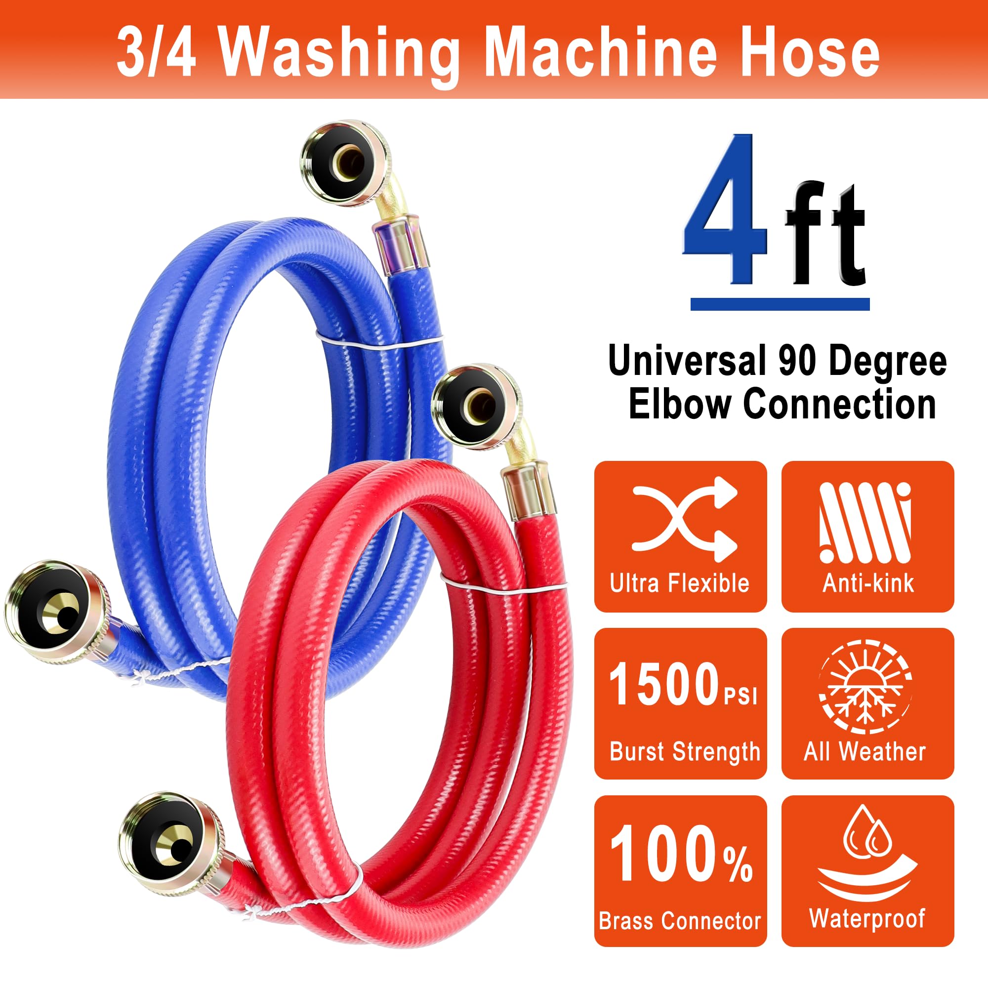 𝗨𝗻𝗶𝘃𝗲𝗿𝘀𝗮𝗹 𝗜𝗻𝗹𝗲𝘁 𝗛𝗼𝘀𝗲: Our 4FT 90 degree rubber washing machine hose is made of lead-free material, extra thick rubber gasket, and 100% rubber inner tube, making the hose more resistant to corrosion and long life. Withstands pressures up to 1500 psi and is compatible with most washing machines and other appliances