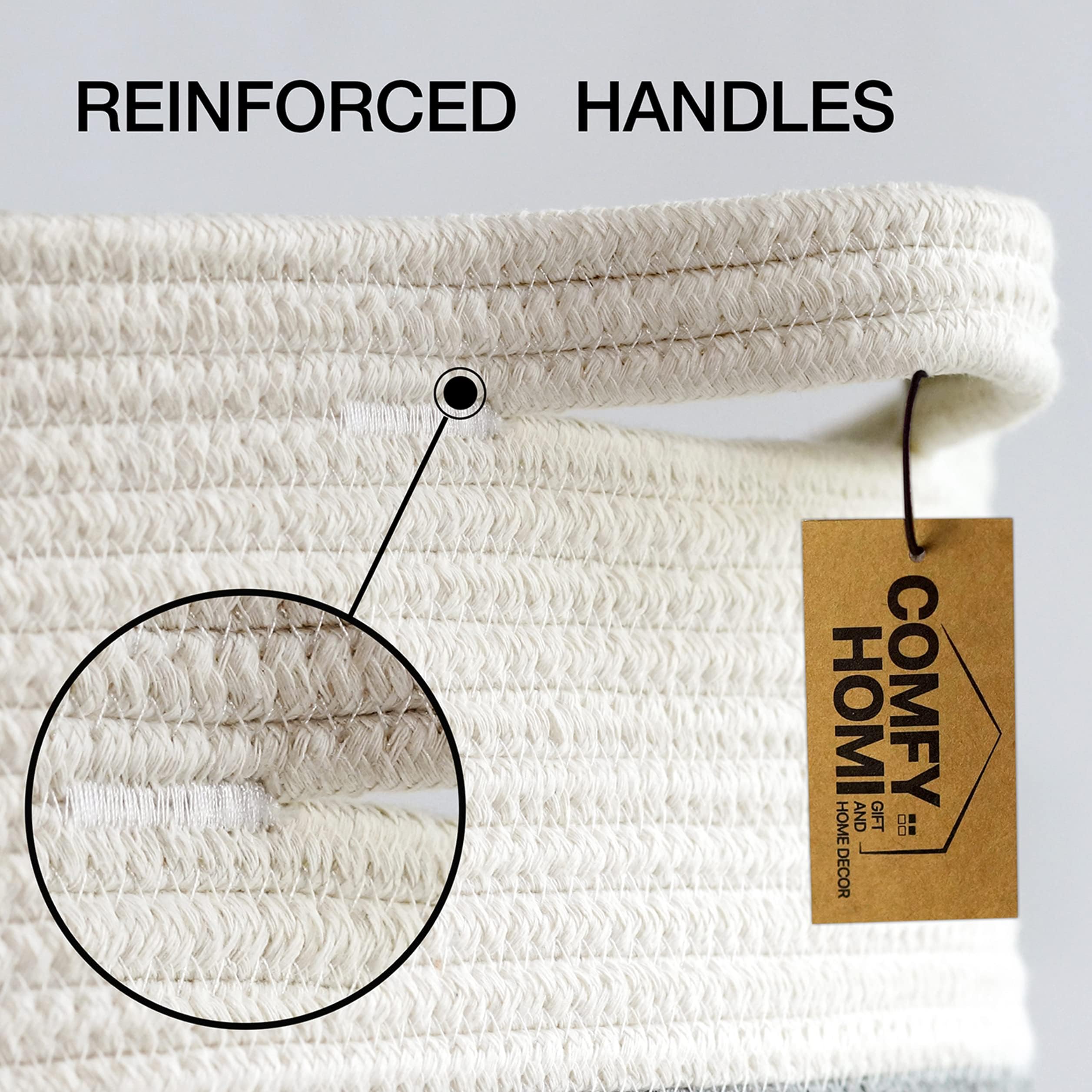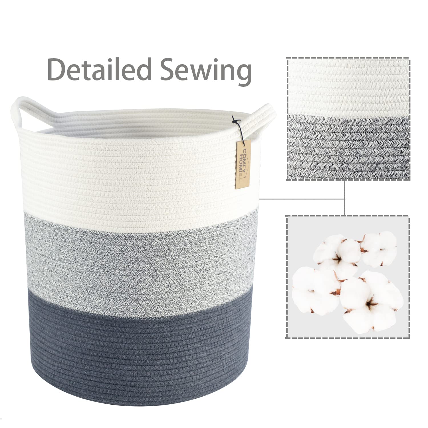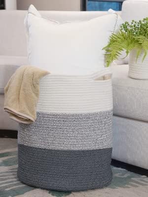 COMFY-HOMI XXL Large Laundry Basket with Handles Blanket Baskets Living Room|Woven Cotton Rope Decorative Basket Laundry Hamper Baby Gift Nursery Dog Toy Storage Organizer Bin-16”x18”-3Tone Grey