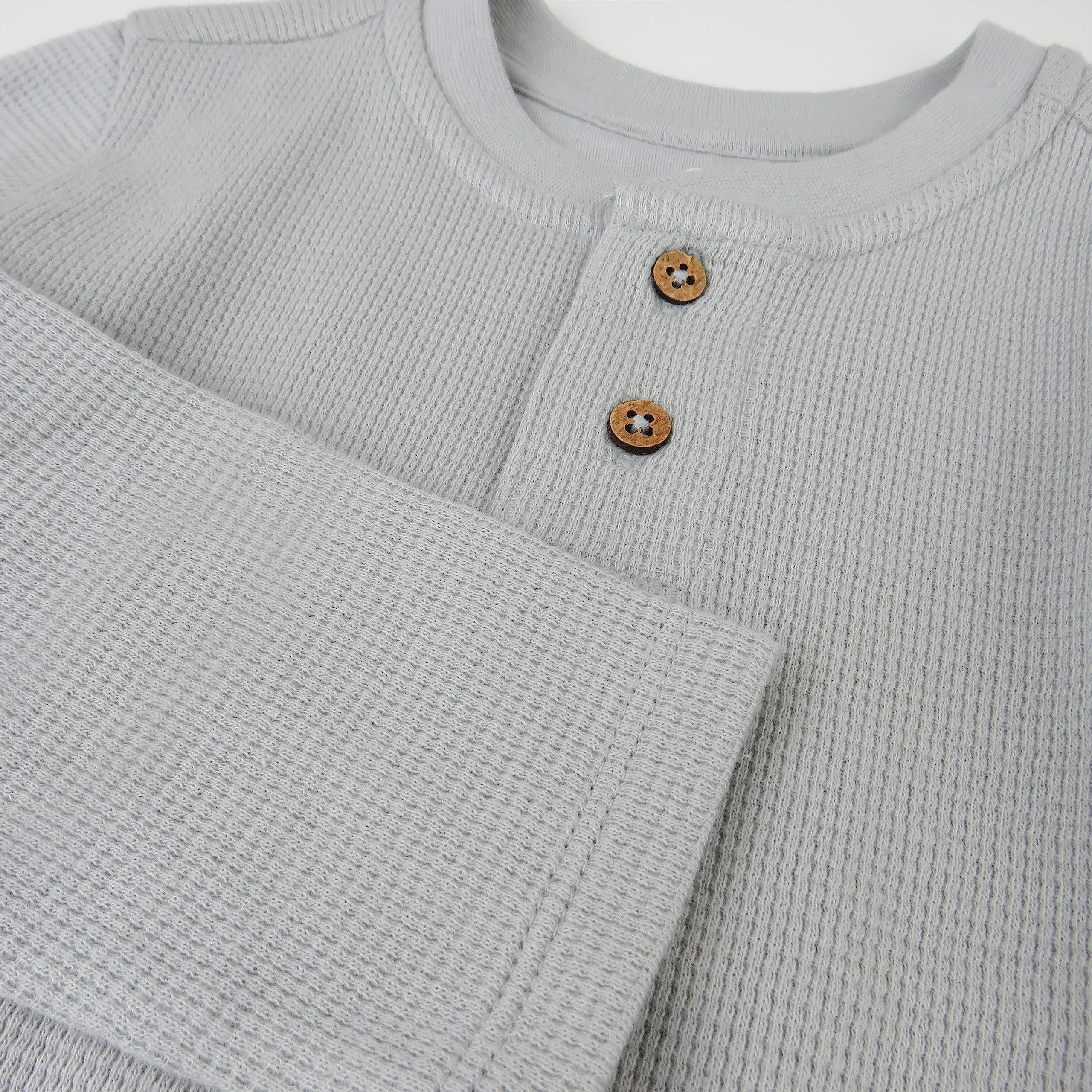 Description You can never have enough tops for boys and that's why we designed this convenient 5-pack of Henley style Tshirts. Our long-sleeve Henley tee is made with 100% organic cotton in a premium waffle texture with coconut buttons. This t-shirt makes getting dressed easy and it's no wonder that this style is a best seller and favorite for parents and kids. A fun assortment of colors will match back to your comfy bottoms for endless outfits that are perfect for going out or playing at home.