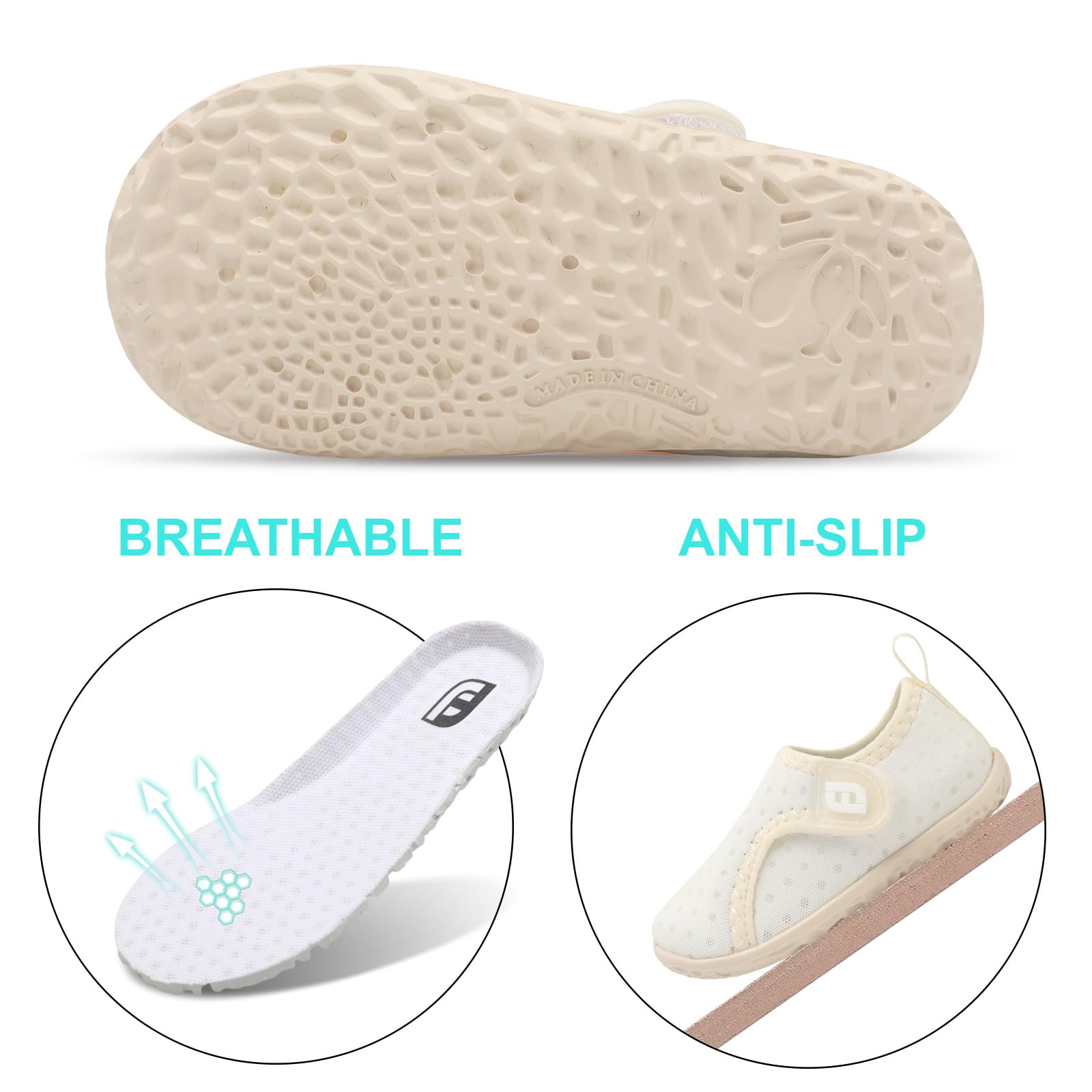 Breathable Materials: Baby Water Shoes are made of high-quality soft stretchy fabric, quick-drying and lightweight, offers comfortable and excellent wearing experience for your child