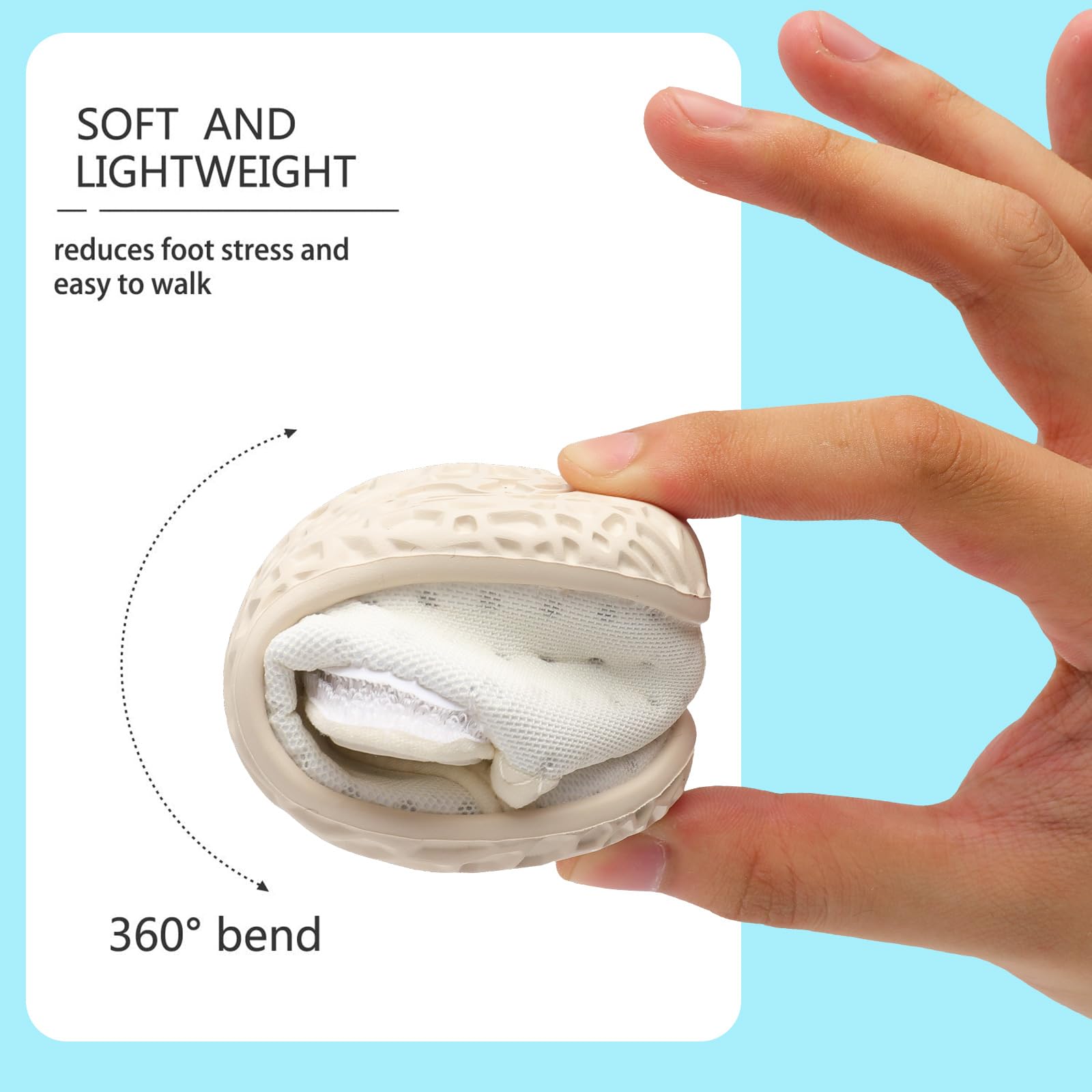Non-slip Outsole:baby Barefoot Walking Shoes with Non-slip EVA sole make sure of shock absorption performance and protects your child’s feet from being hurt by sharp objects