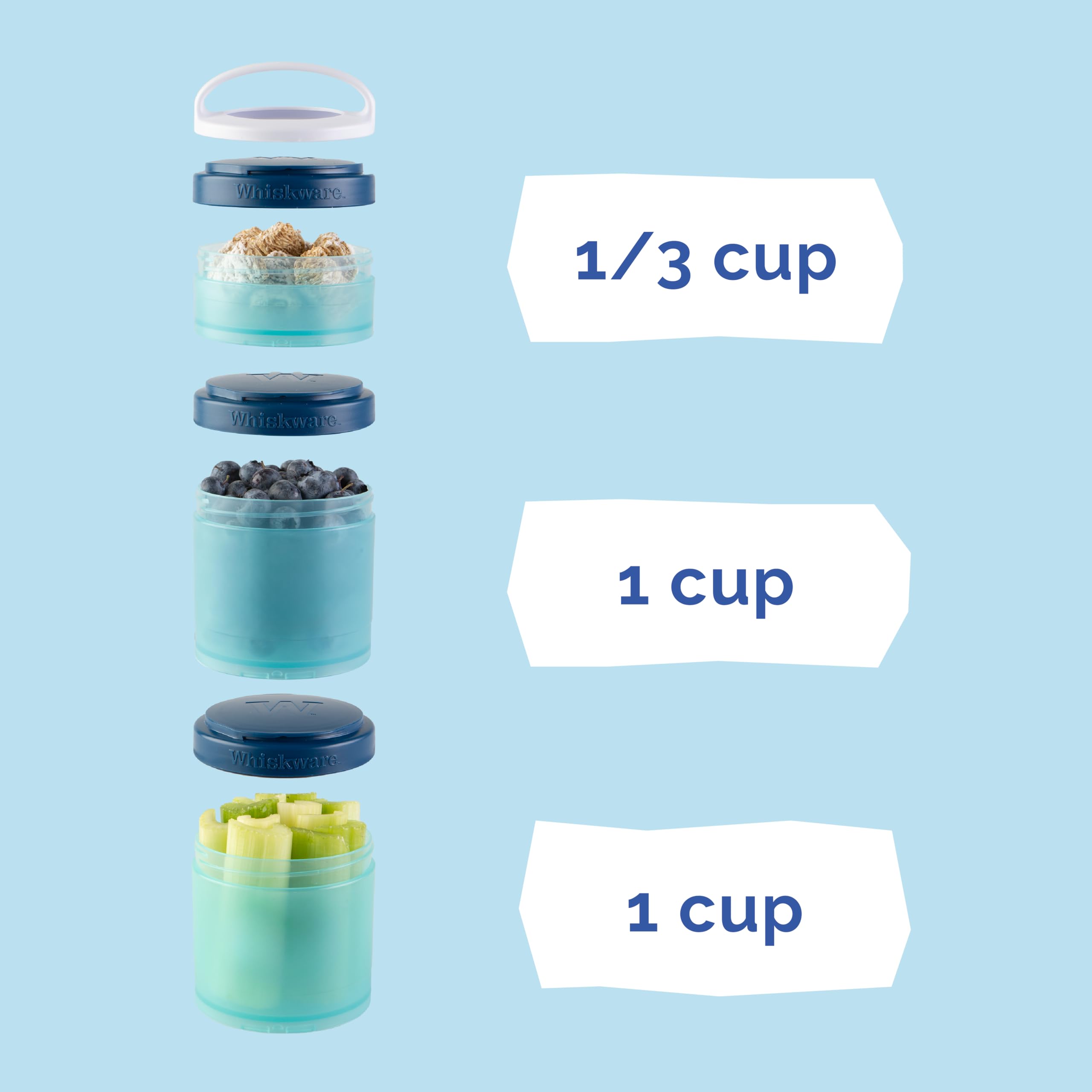 Includes 3, cupholder friendly jars, measuring 1/3 cup, 1 cup, and 1 cup, BPA and phthalate-free for safety; dishwasher and freezer safe for convenience