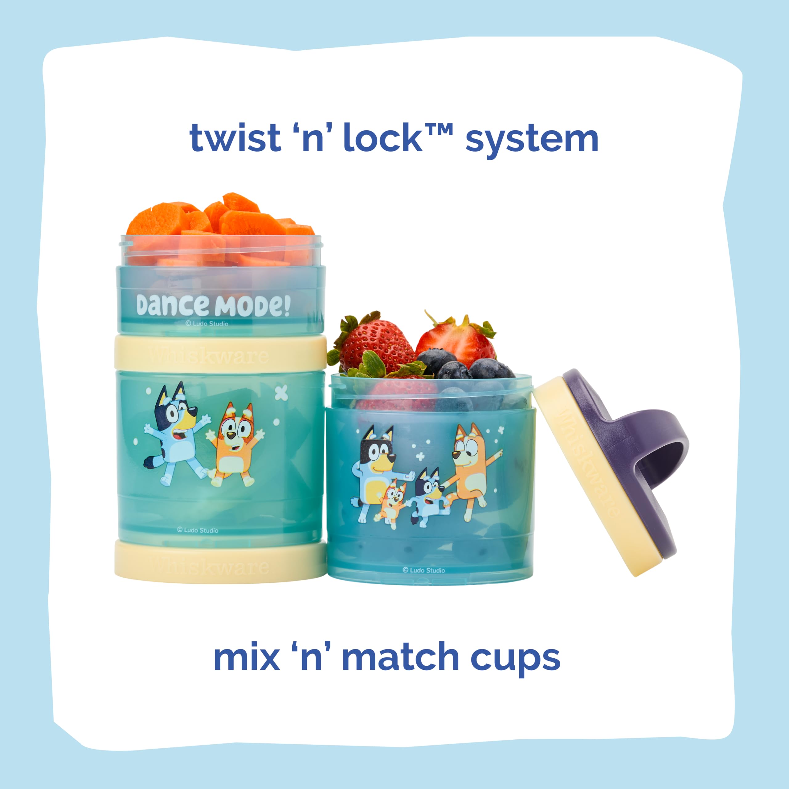 Durable, stackable snacking containers designed to make eating easy, fun, and mess free