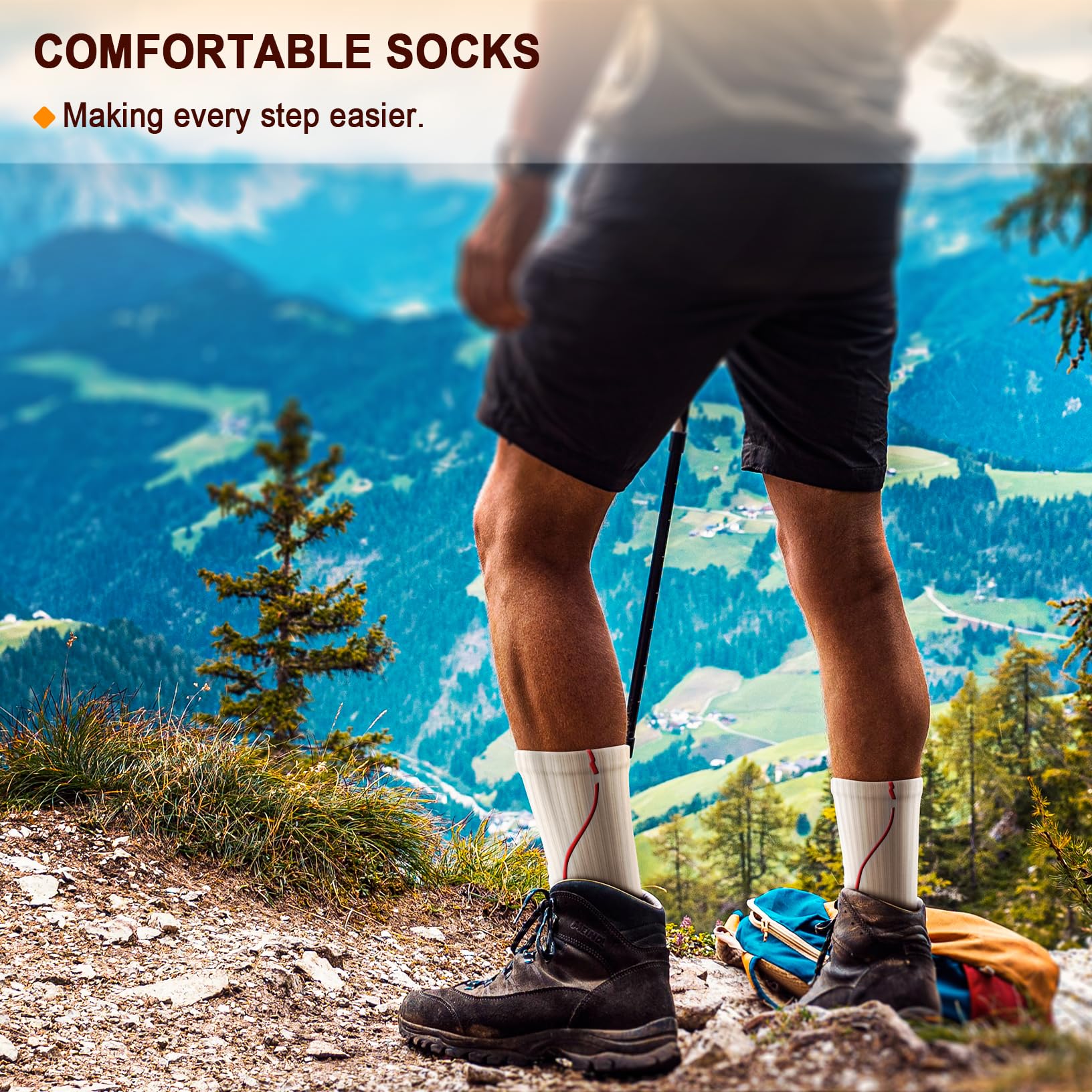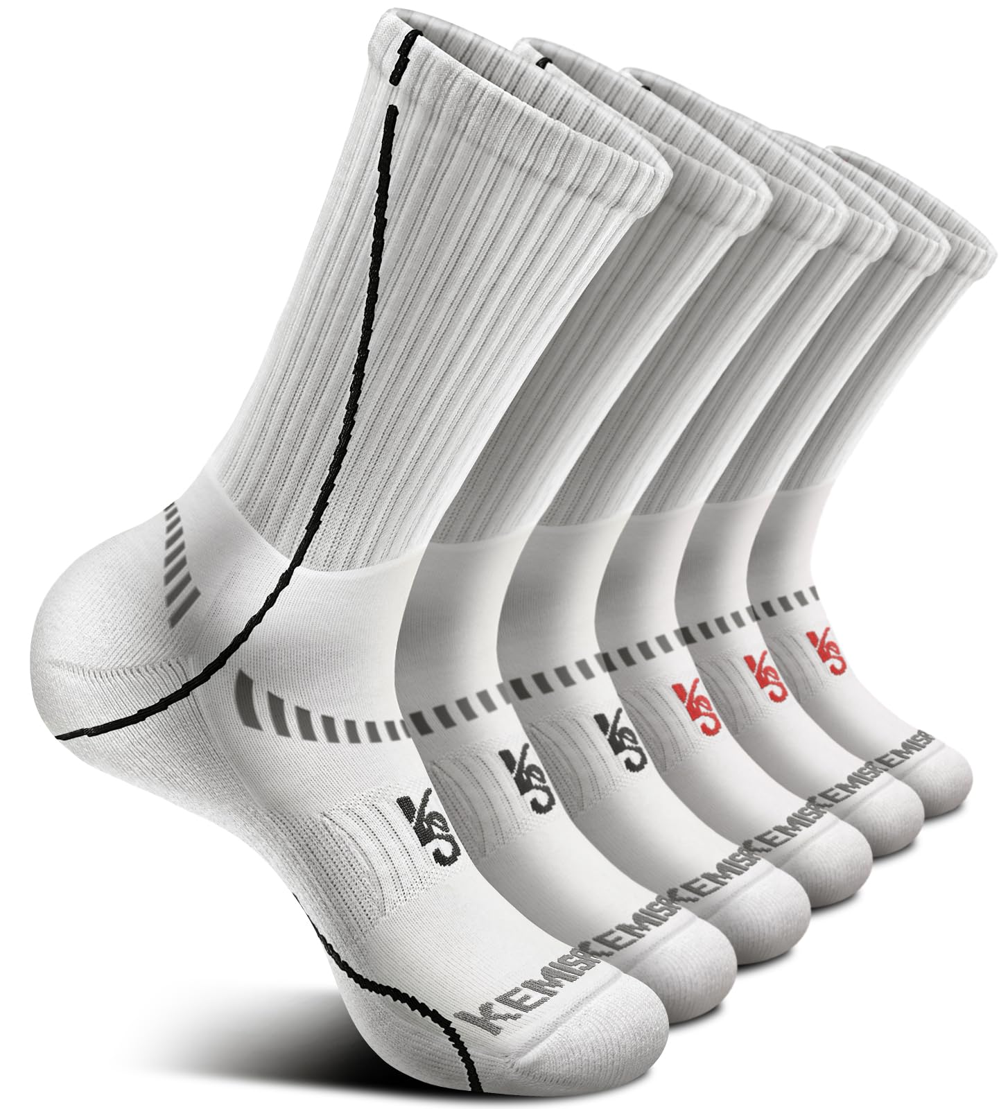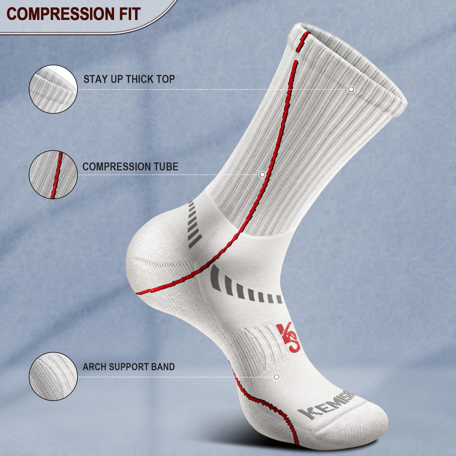 COMPRESSION -- With proper stitching density, Its particular material composistion of yarns mixed with spandex provides these crew socks proper elasticity and good compression to feet, which can promot blood flow for a more comfortable experience;