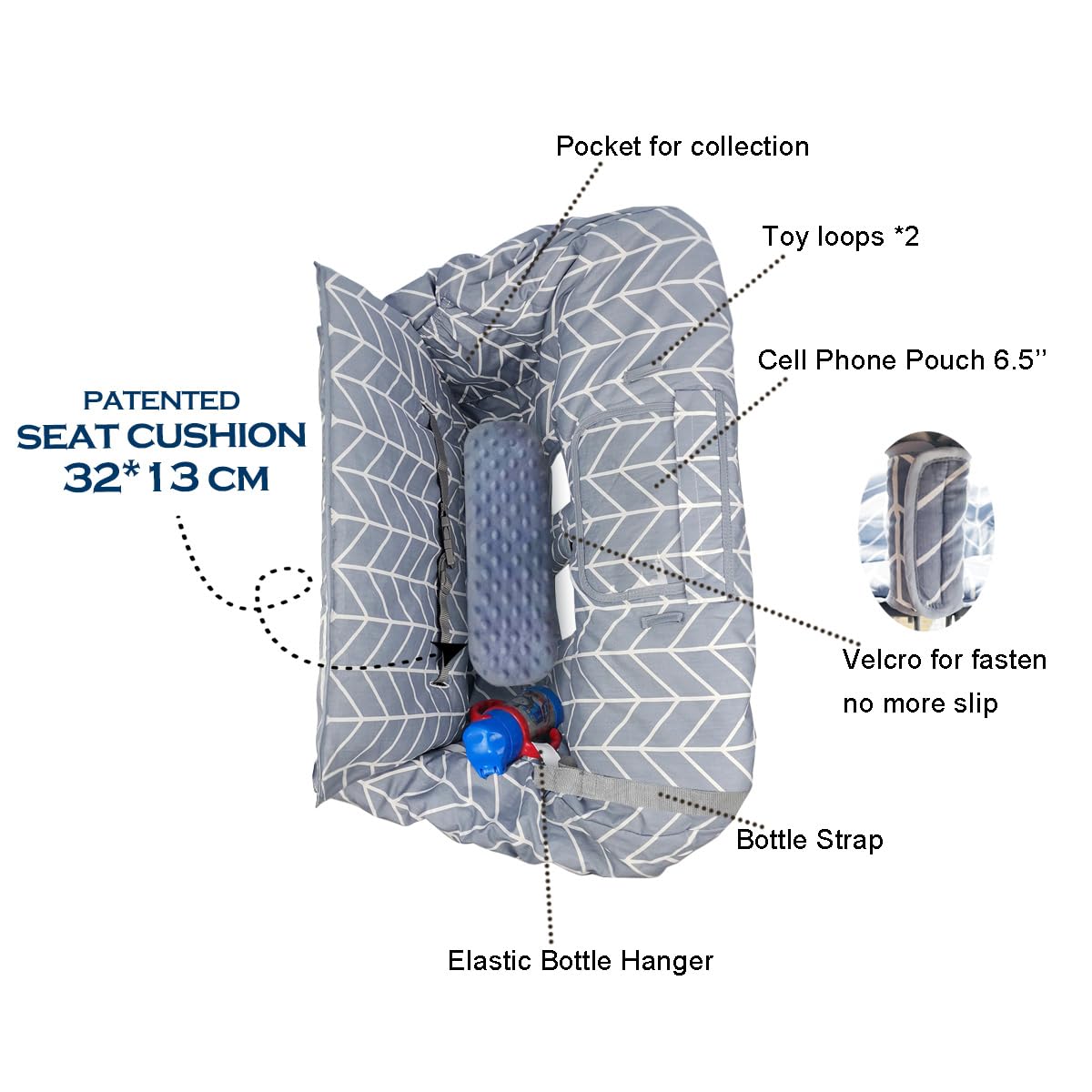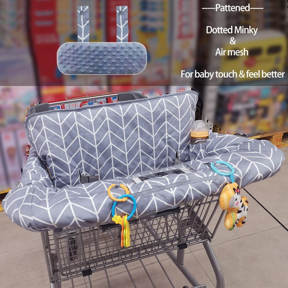 GROCERY CART COVER with detachable CUSHION: Even ICOPUCA toddler shopping cart cover itself is padded already, we do something more for babies. Offer mums an extra Detachable cushion to ensure babies can pick more comfort! The cushion has dotted minky/mesh air for side A/B for winter/summer use, babies will love that;