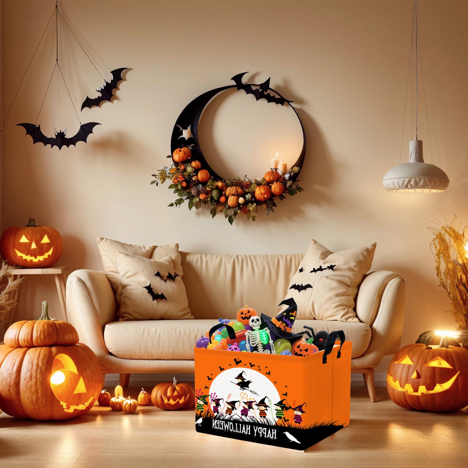 Spooky Halloween Themed Design for Festive Fun: Featuring classic Halloween-themed prints such as bats, pumpkins, and skulls, this Halloween basket enhances the festive atmosphere of any party. It’s perfect for creating joyful memories and adding a fun touch to your Halloween celebration.
