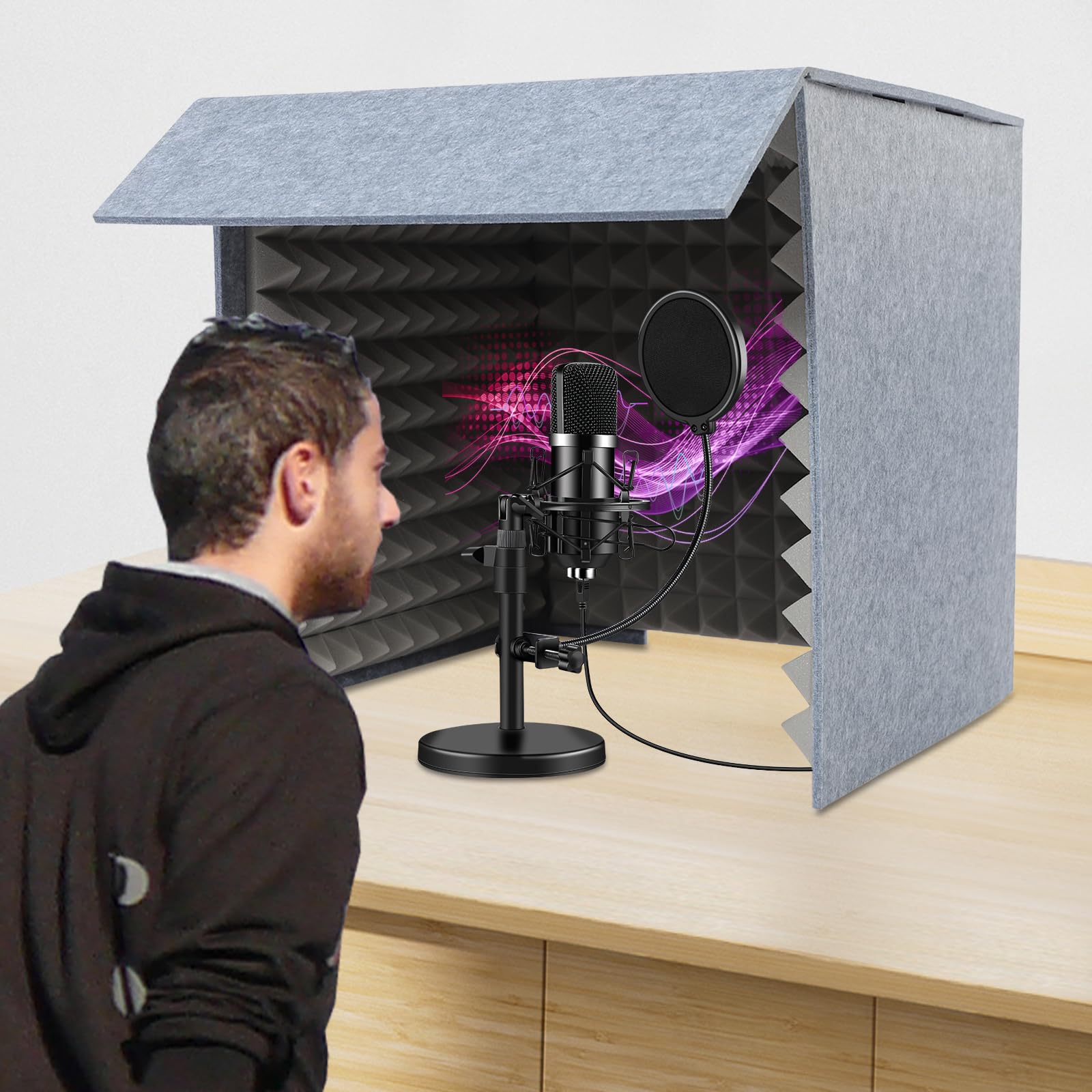 QUALITY MATERIAL: The desktop vocal recording booth is made of high quality sponge and polyester material. Durable and soundproof, can be used for a long time