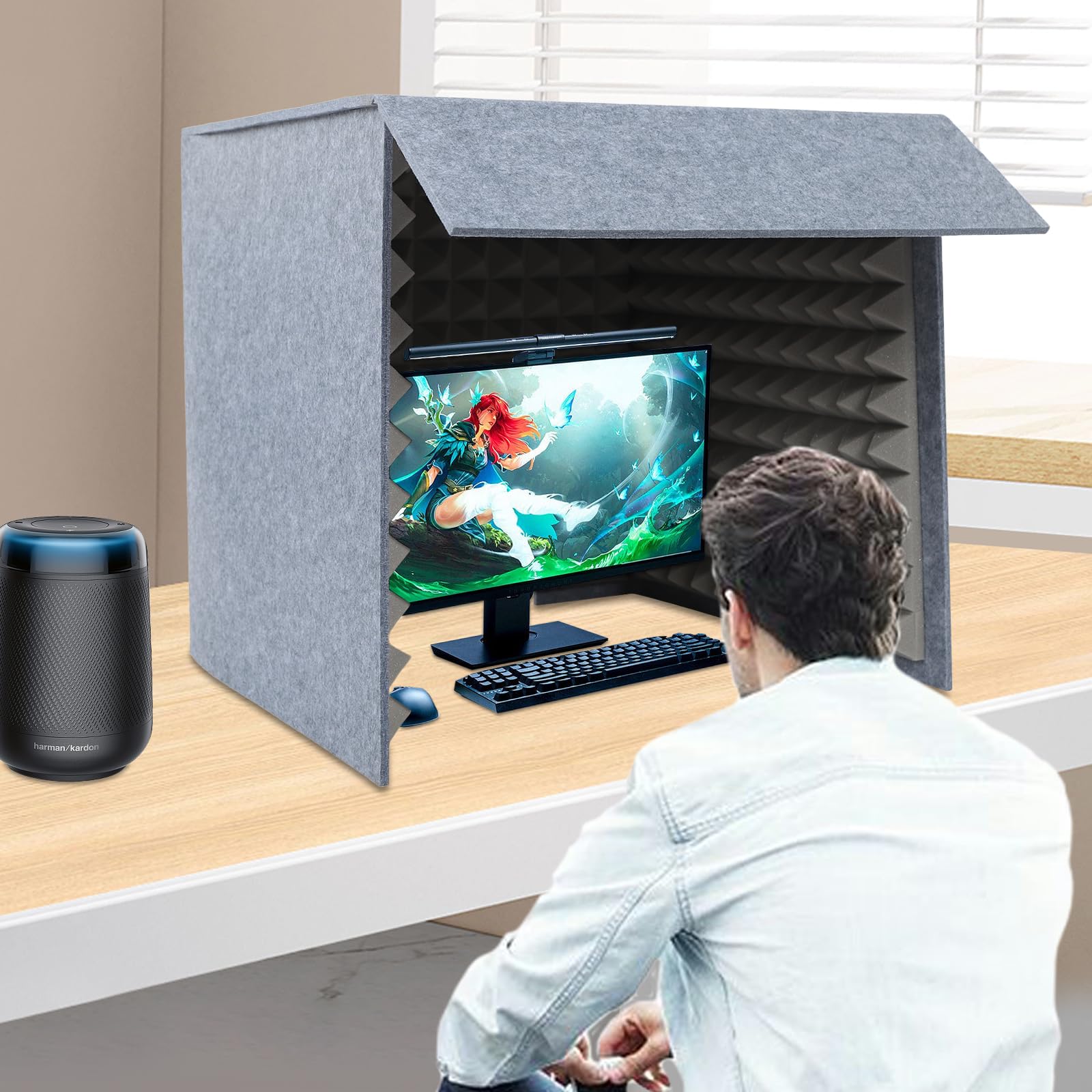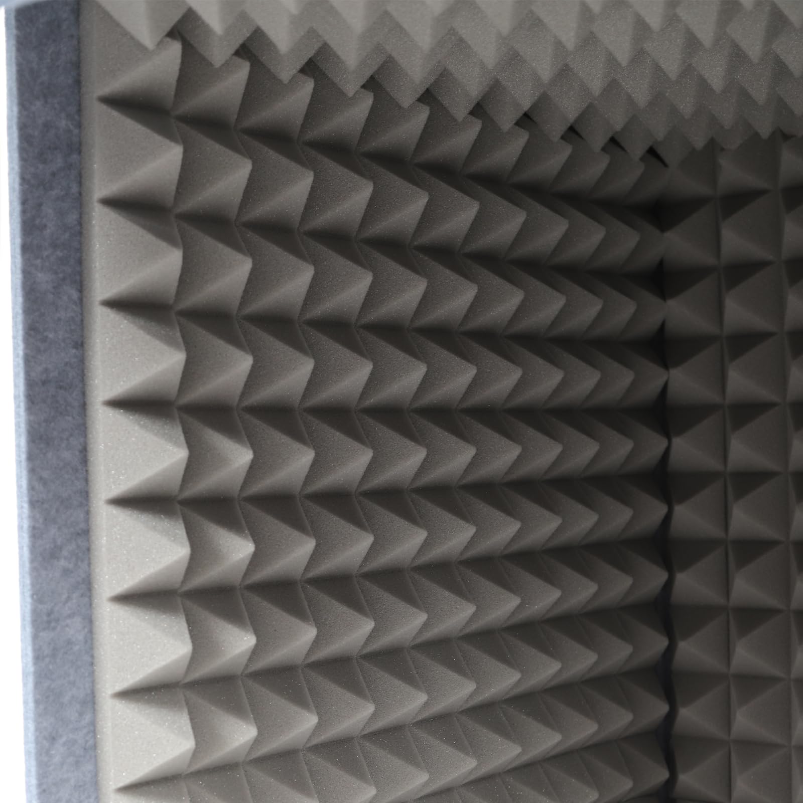 EFFECTIVE NOISE REDUCTION: The portable soundproof booth comes with a 12mm thick outer panel to enhance the sound insulation effect. Double-layer soundproof structure and three sides semi-enclosed structure can ensure effective noise reduction. The metal-free frame design prevents metal from interfering with the recording, thus improving the recording quality