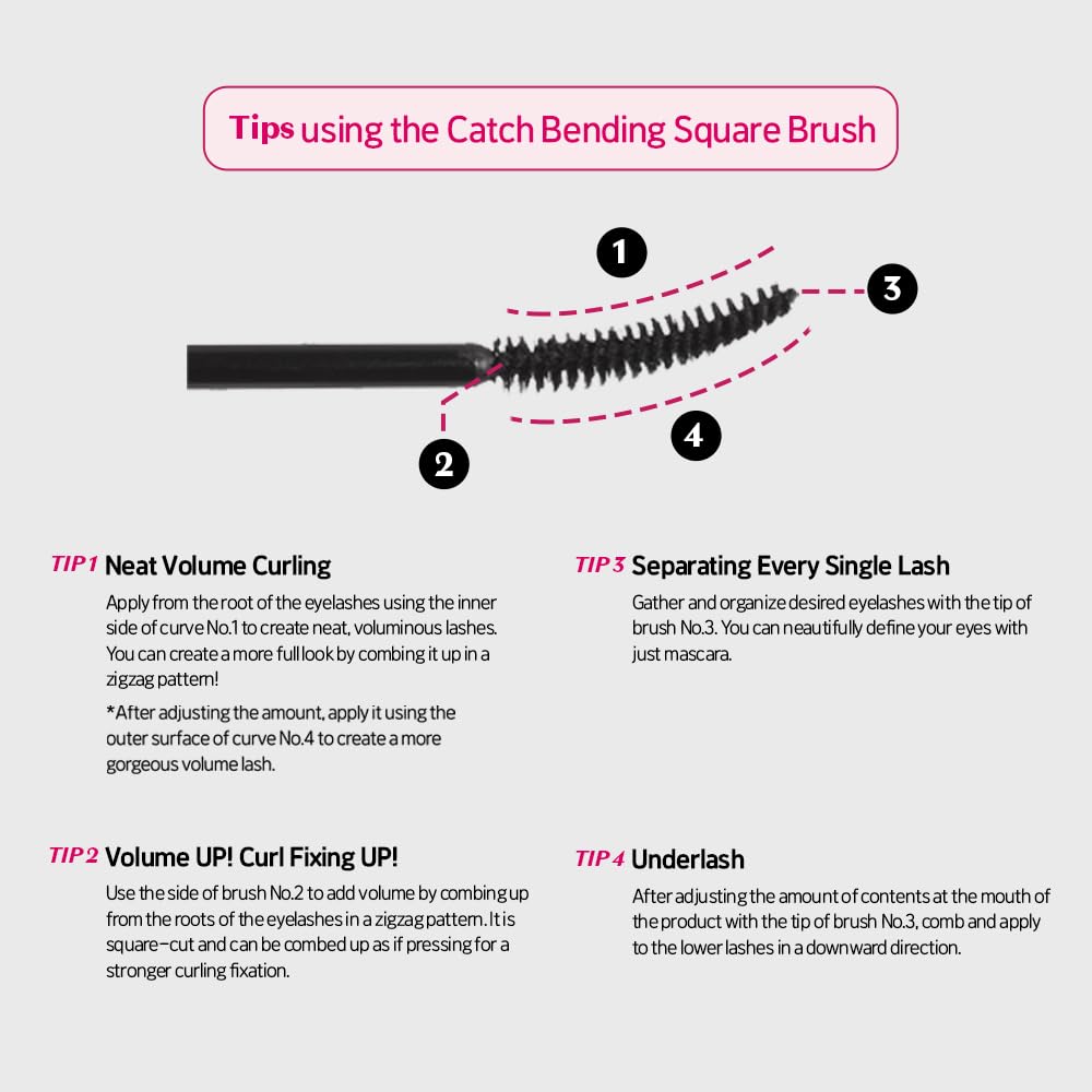 Catch Bending Square Brush for Precise Curling: The unique square-edge brush grabs every lash from root to tip, delivering clump-free and natural volume
