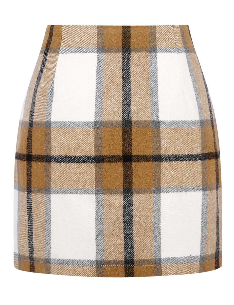 Style: Casual slim fit bodycon flannel plaid mini skirts for junior/lady