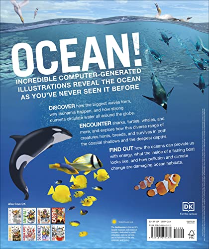 Explore the deep blue as you’ve never known before with this children's encyclopedia perfect for a young explorer. Forming part of a fantastic series of kid's educational books, this bold and brilliant kid's encyclopedia uses ground-breaking CGI imagery to reveal the world as you've never seen it before. Informative, diverse in subject matter, easy to read and brimming with beautiful graphics, young learners can explore the incredibly detailed cross-sections and cutaways that reveal the inner workings of our incredible oceans. This charming children’s encyclopedia opens the world in new ways, with: - Packed with facts, charts, timelines, and illustrations that cover a vast range of topics. - Encompassing a visual approach with illustrations, photographs and extremely detailed 3D CGI images. - Crystal clear text distills the key information. - DK's encyclopedias are fact-checked by subject experts to offer accuracy beyond online sources of information. This fully-updated edition of Knowledge Encyclopedia Ocean! is the perfect encyclopedia for children aged 9-12, ideal for inquisitive minds, covering the topics of ocean science, seashores, polar oceans, ocean maps and so much more! Jam-packed with fun facts about sea creatures and ocean environments, you can explore sharks, jellyfish, turtles, dolphins, octopuses, penguins, and seahorses, fish and an array of other animals that call the ocean their home. Explore, Discover And Learn! DK's Knowledge Encyclopedia Ocean! uncovers the marvels of the underwater world in unprecedented detail and with stunning realism. Encompassing engaging facts about animal behavior under the water, including a closer look at the geography, geology, and ecology that lies beneath the waves from the dramatic landscapes of the deepest trench and towering underwater chimneys, to coastal coral reefs and kelp forests teeming with life, you can spend quality time diving into the deep blue with your children, accompanied by impressive visuals to engage their senses. A must-have volume for curious kids with a thirst for knowledge, this enthralling ocean encyclopedia is structured in such a way that your child can read a bit at a time, and feel comfortable to pause and ask questions. Doubling up as the perfect gift for young readers, who are always asking questions about the underwater world. At DK, we believe in the power of discovery. This thrilling kid’s encyclopedia is part of the Knowledge Encyclopedia educational series. Celebrate your child’s curiosity as they complete the collection and discover diverse facts about the world around them. Explore the animal kingdom like never before with Knowledge Encyclopedia Animal! Travel back in time to when dinosaurs roamed the earth with Knowledge Encyclopedia Dinosaur! And hone your knowledge on how the human body works with Knowledge Encyclopedia Human Body! Whatever topic takes their fancy, there’s an encyclopedia for everyone!