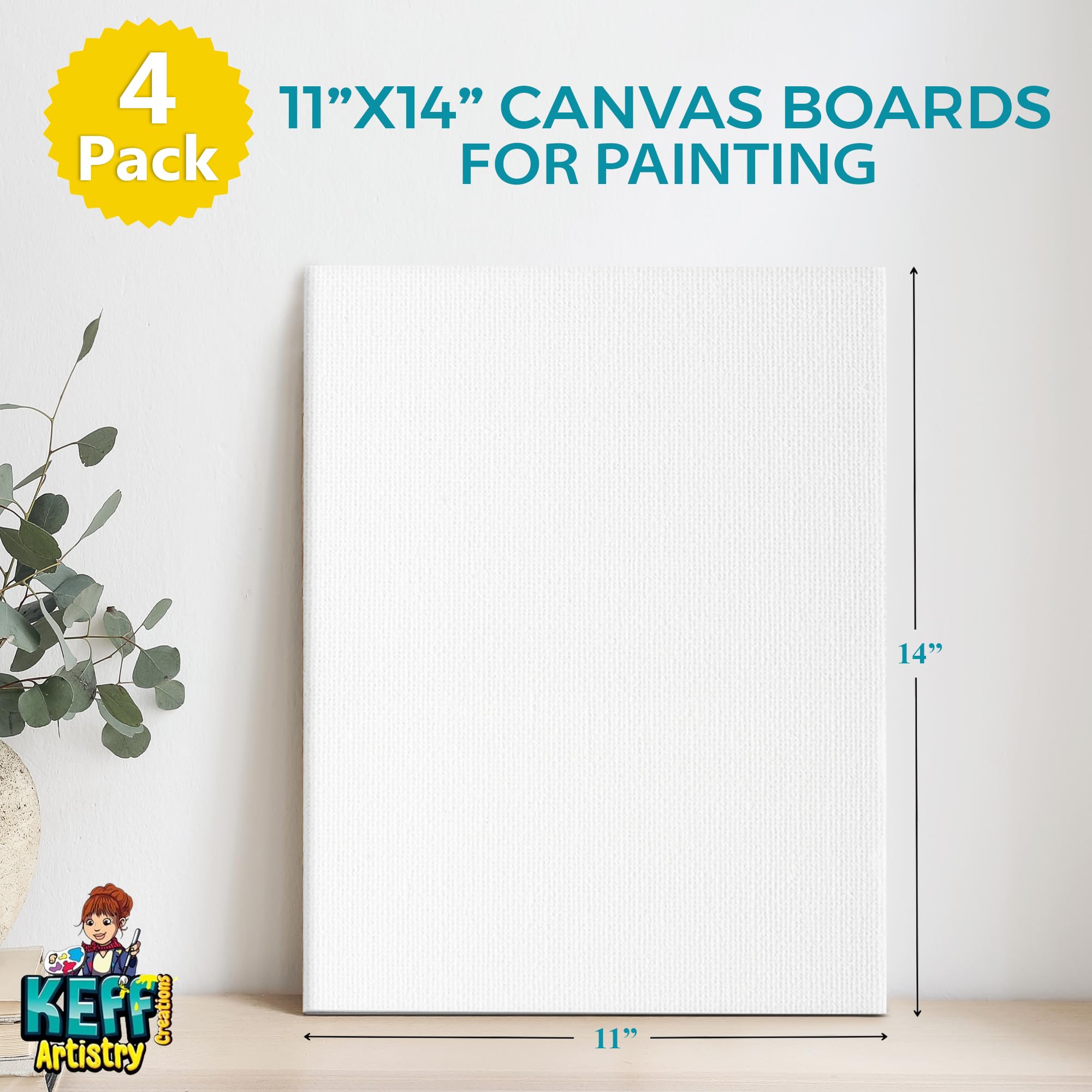 4 PACK 11x14 CANVAS PANELS : Create your masterpiece with this 11x14 inches paint canvas boards for painting that provide a smooth and durable surface. These are perfect for beginners and artists who want to keep their artwork in excellent condition over time.