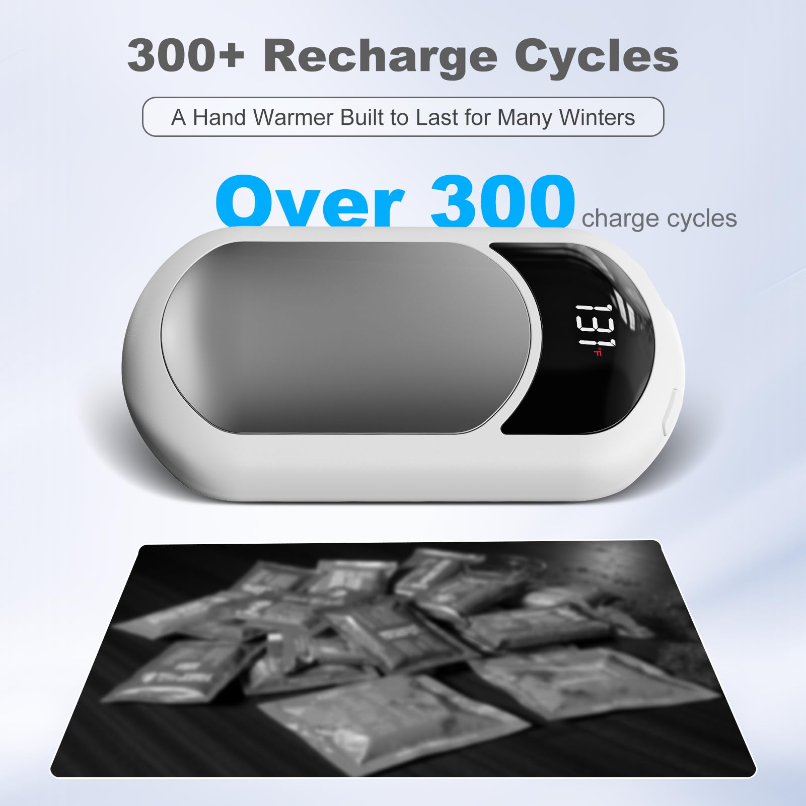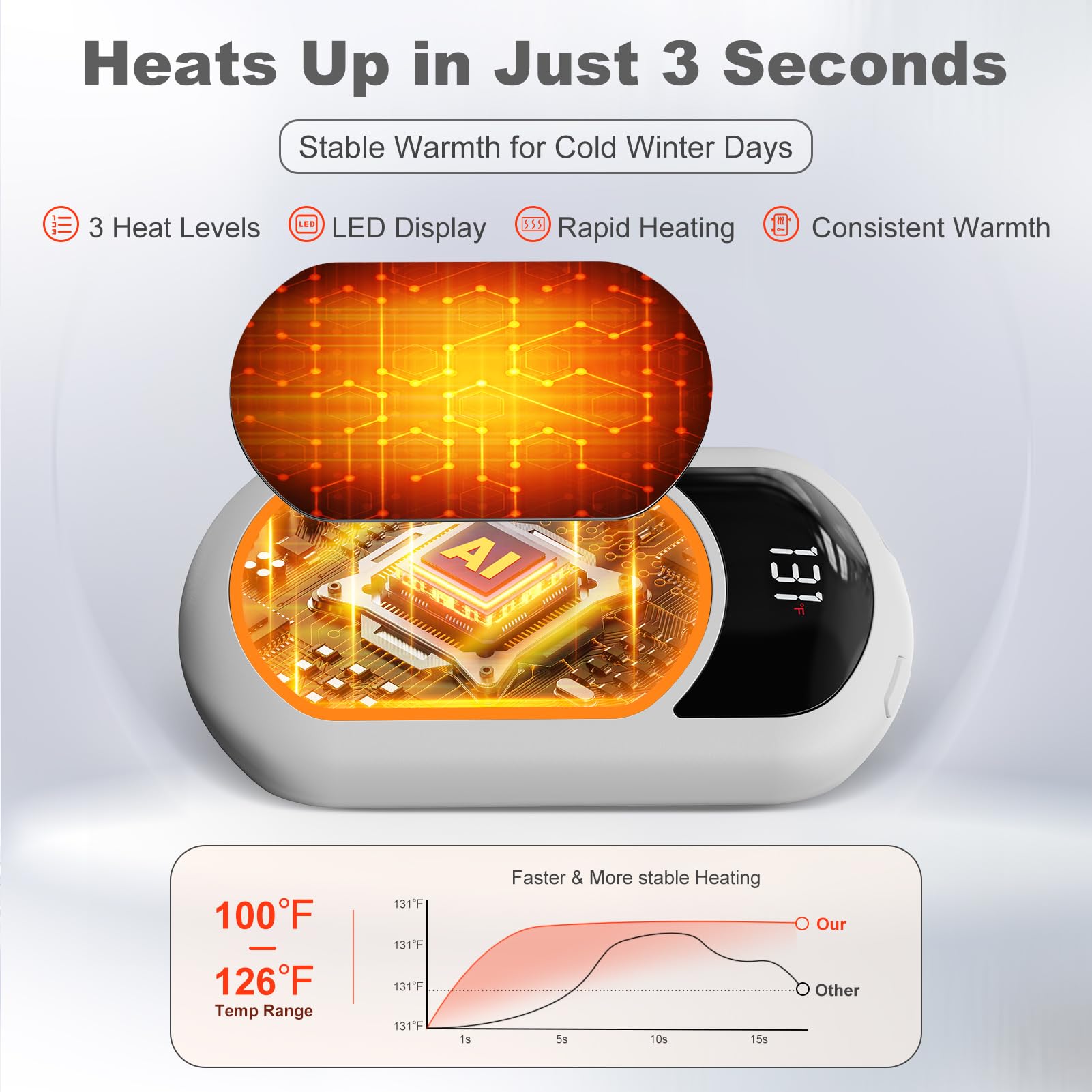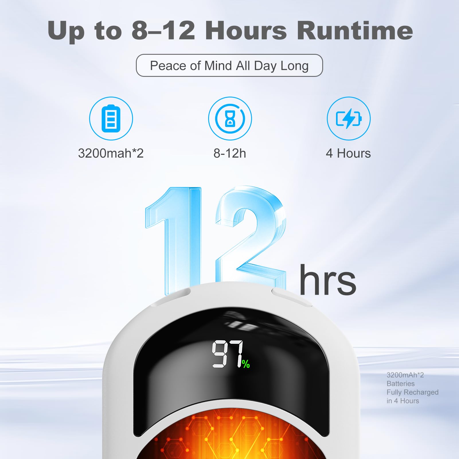 Fast Heating & 3 Heat Levels – Heat up in just 3 seconds and stay warm with adjustable settings (113℉, 122℉, 131℉). The LED screen shows both temperature level and remaining battery power. Ideal rechargeable hand warmer for cold offices, outdoor sports, or as hunting essentials men count on