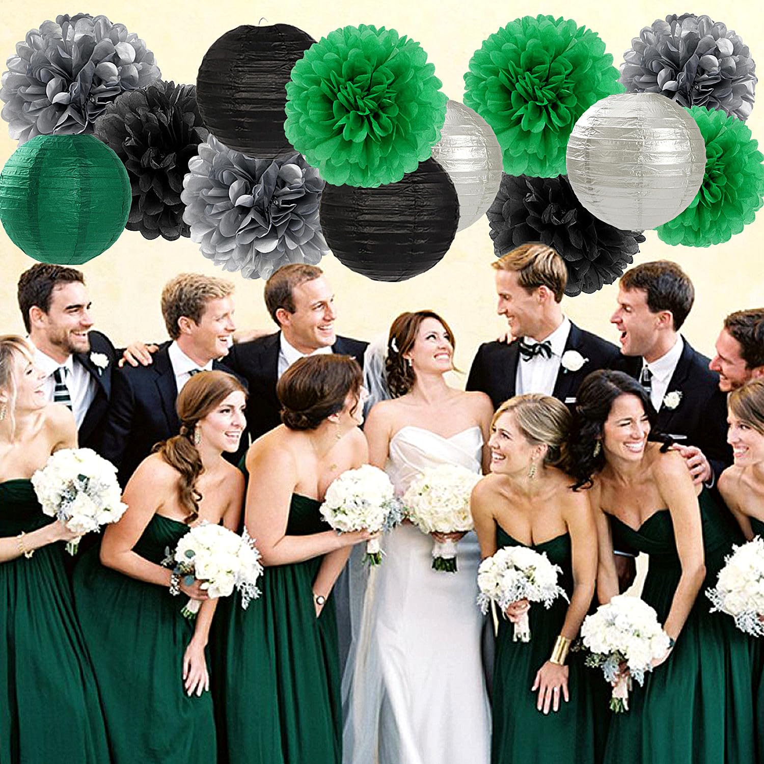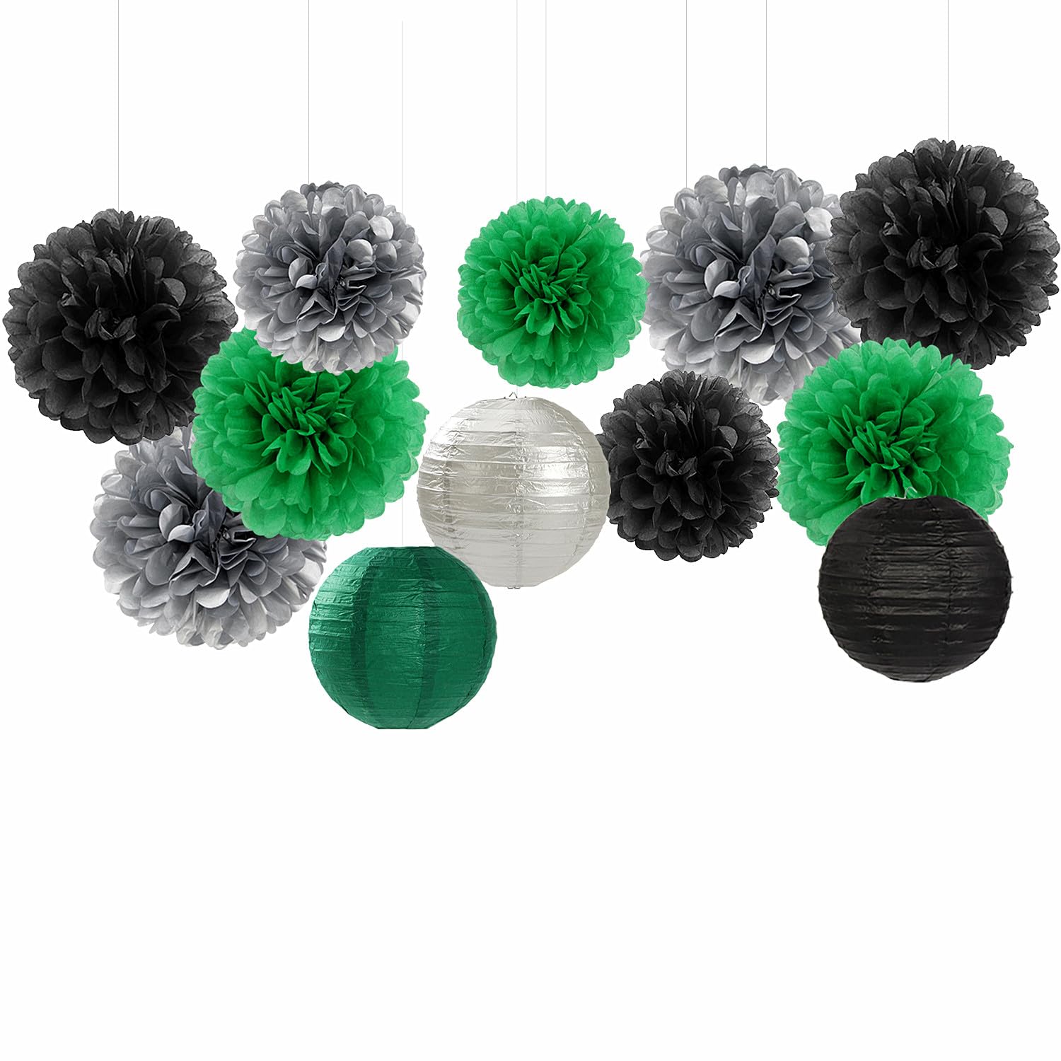 【Wide use】These paper lanterns and pom poms are great for indoor and outdoor events such as green birthday decorations for women men,football game day,black and green graduation,bachelorette party decor.