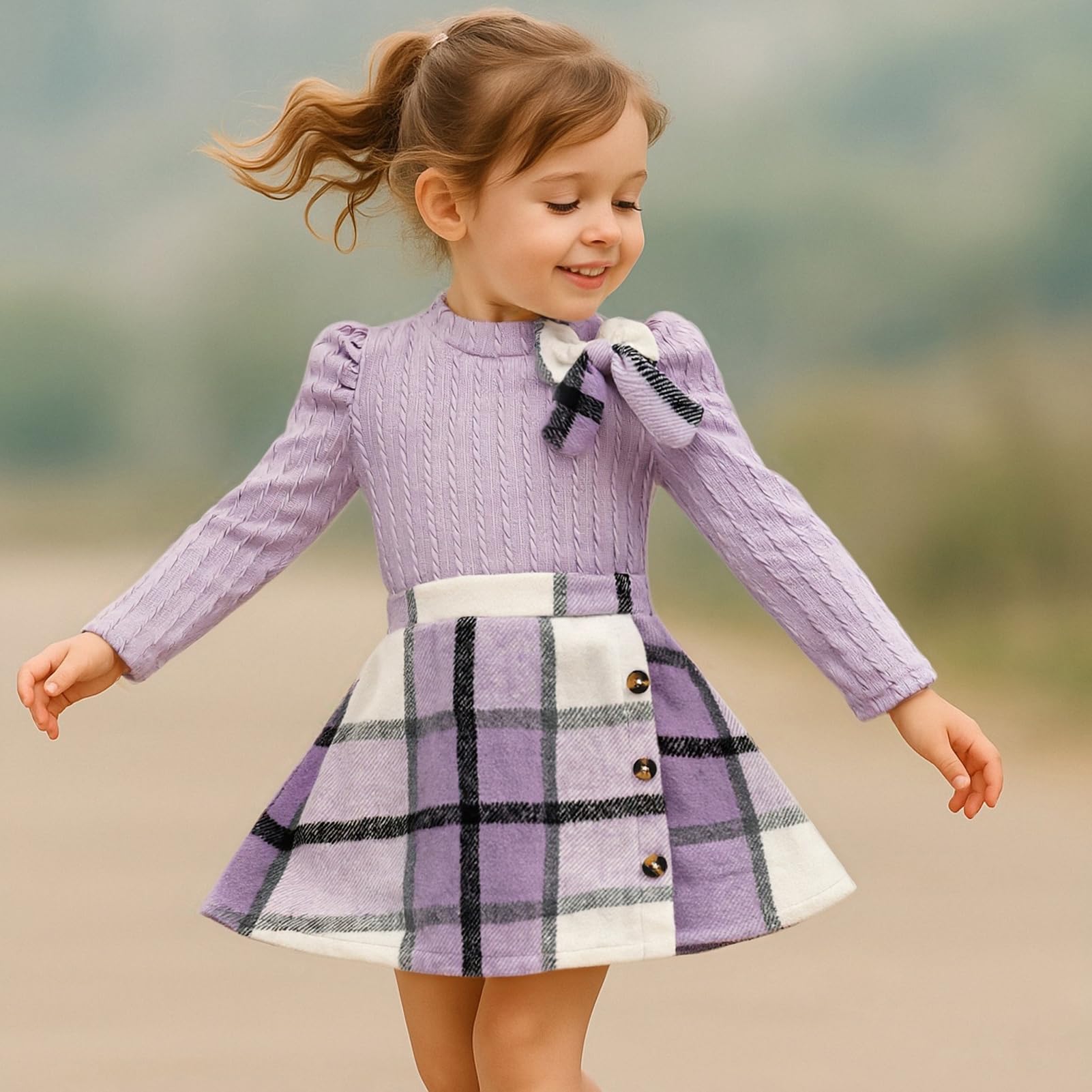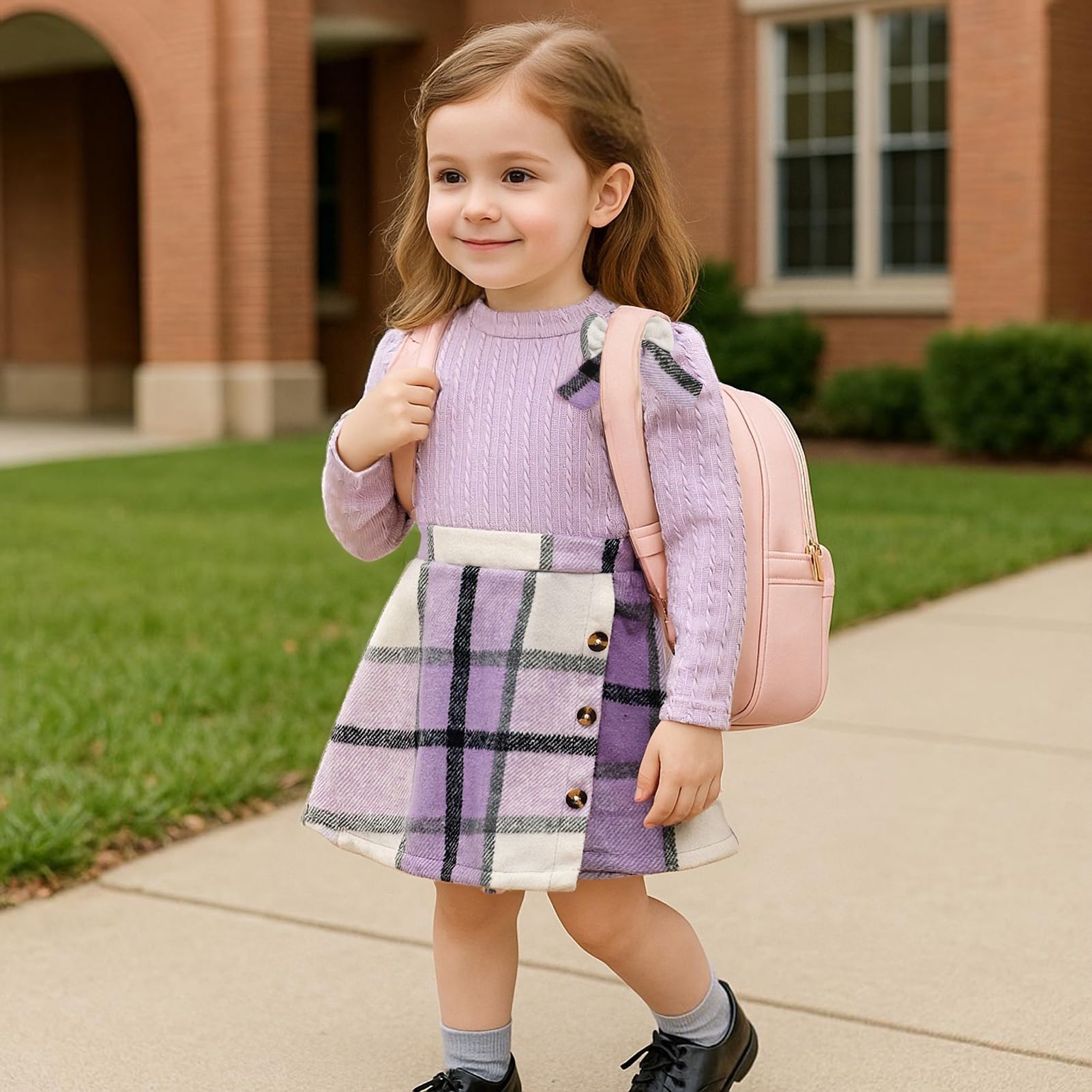 Design: Kids Little girl spring fall winter skirt set,knitted cotton long sleeve solid color top, button mini skirt with elastic waist , winter fashion warm toddler girls clothes outfits.