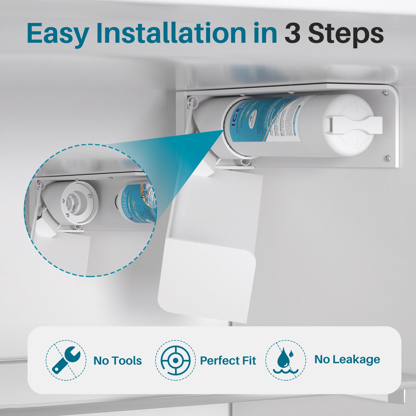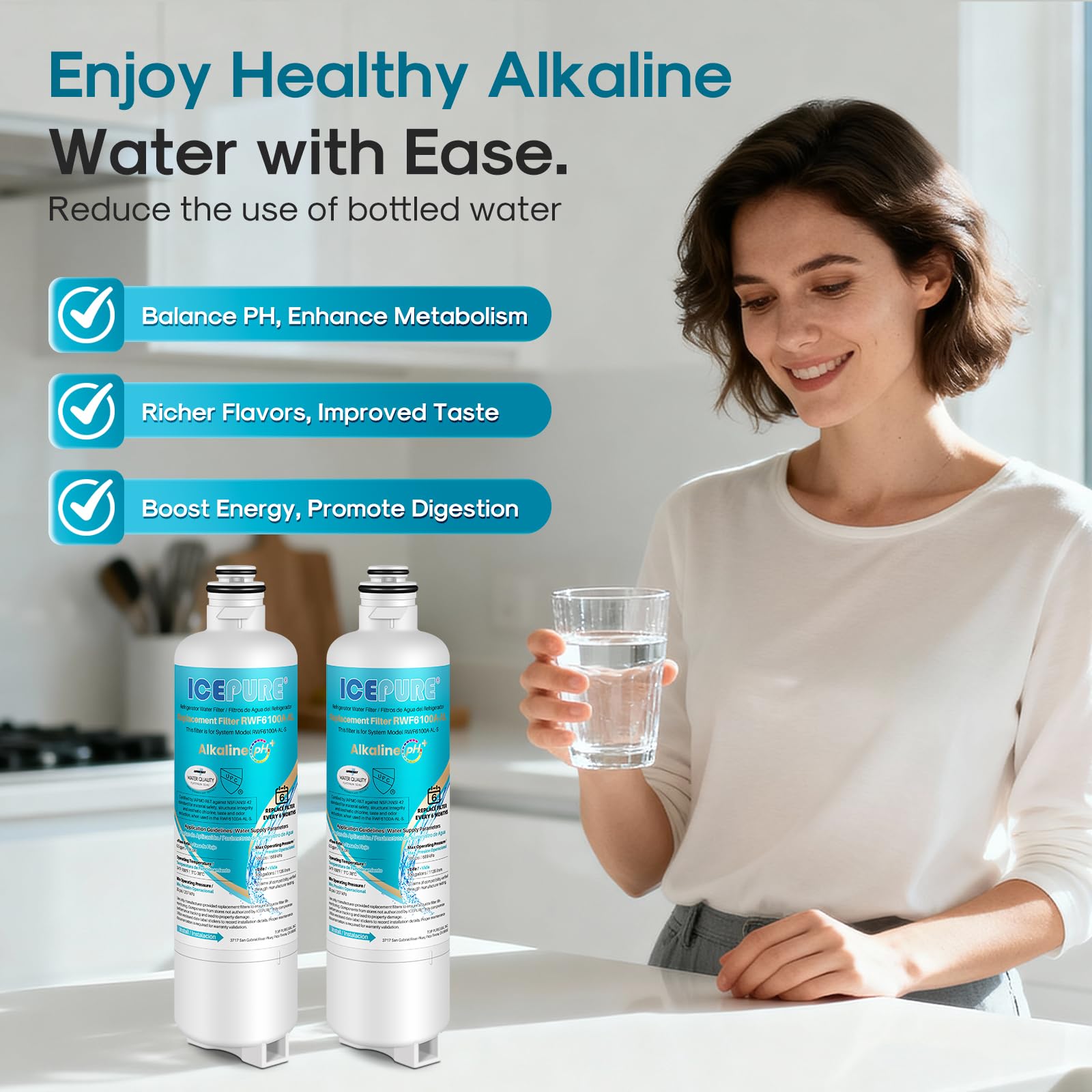 One Click Installation, Save Time and Effort - The RWF6100A-AL refrigerator alkaline water filter unique design enables you to install without any tools. It only takes three easy steps to complete the installation. Even for the first replacement, it can be easily completed within one minute, saving time and effort and saying goodbye to the cumbersome installation process.