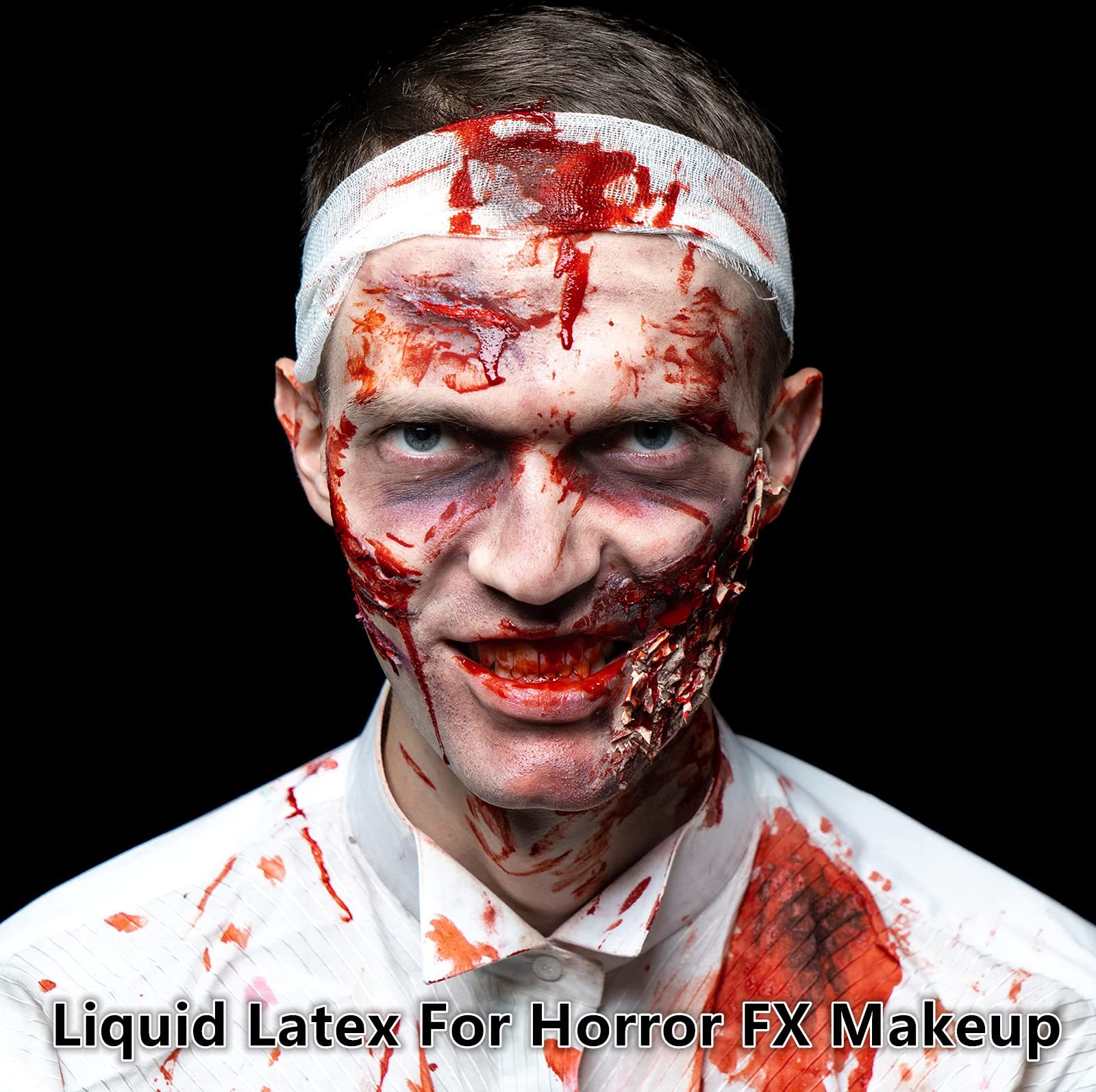 【Safe and Non-toxic】Made with safe and natural materials.It is vegan and safe to apply on the skin.It doesn't clog pores and allows the skin to breathe.NOTE:Liquid latex needs to be used layer by layer. After one layer dries, another layer is added. It dries fast, and then another layer is applied. Newcomers need to learn how to use it.If you want more, we recommend that you choose our 2 oz liquid latex with a large capacity.