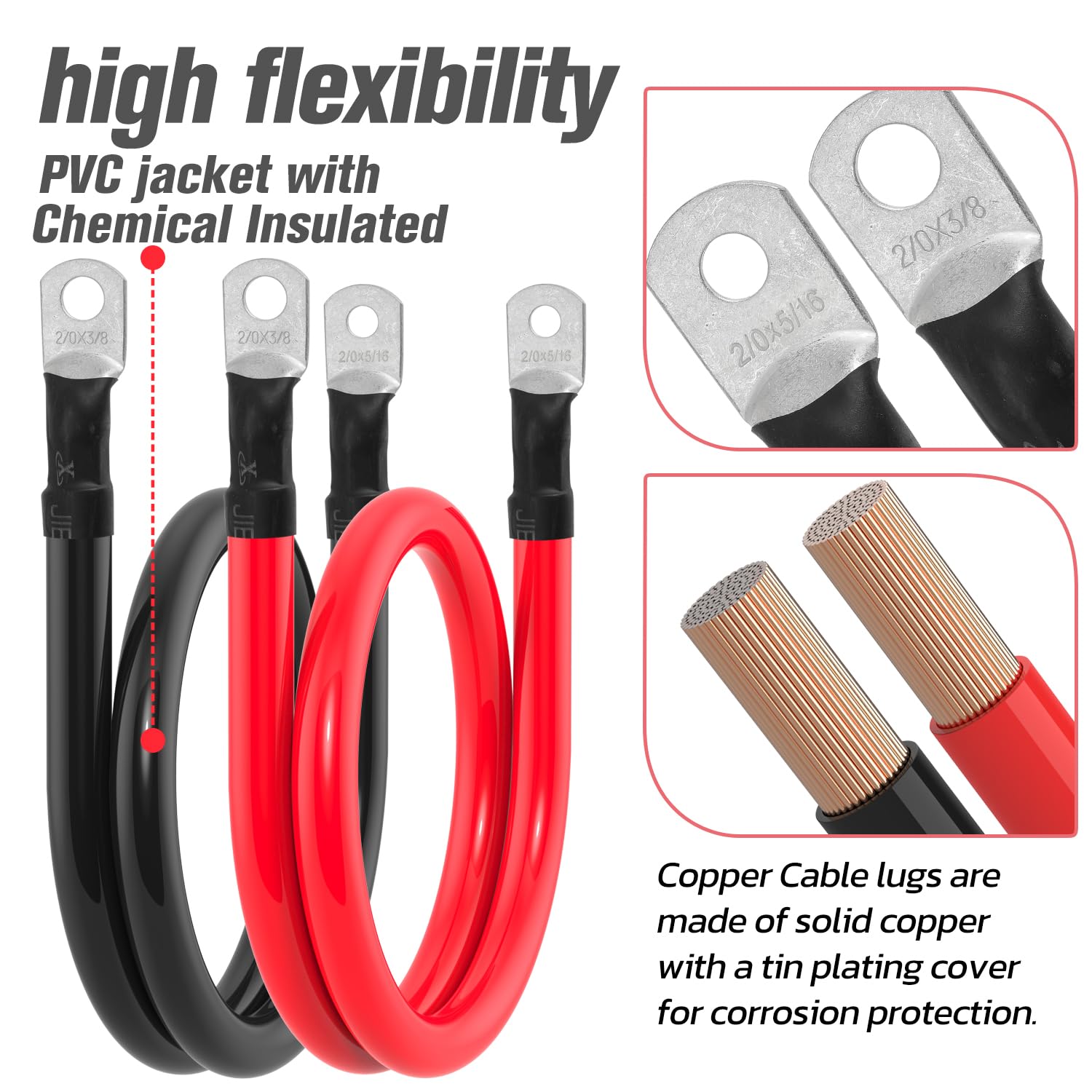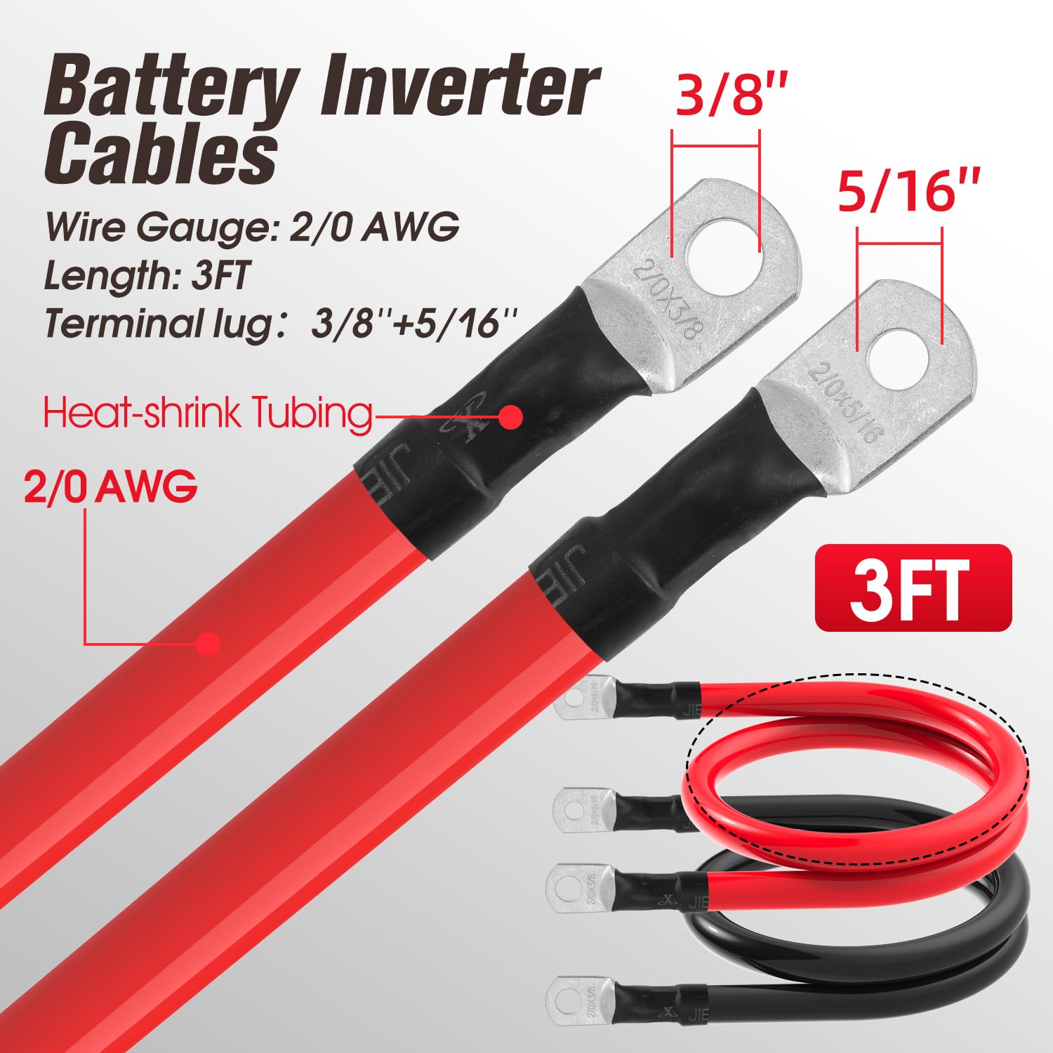 Wire Gauge: 2/0 AWG; Length: 3FT; Terminal lugs: 3/8"+5/16"